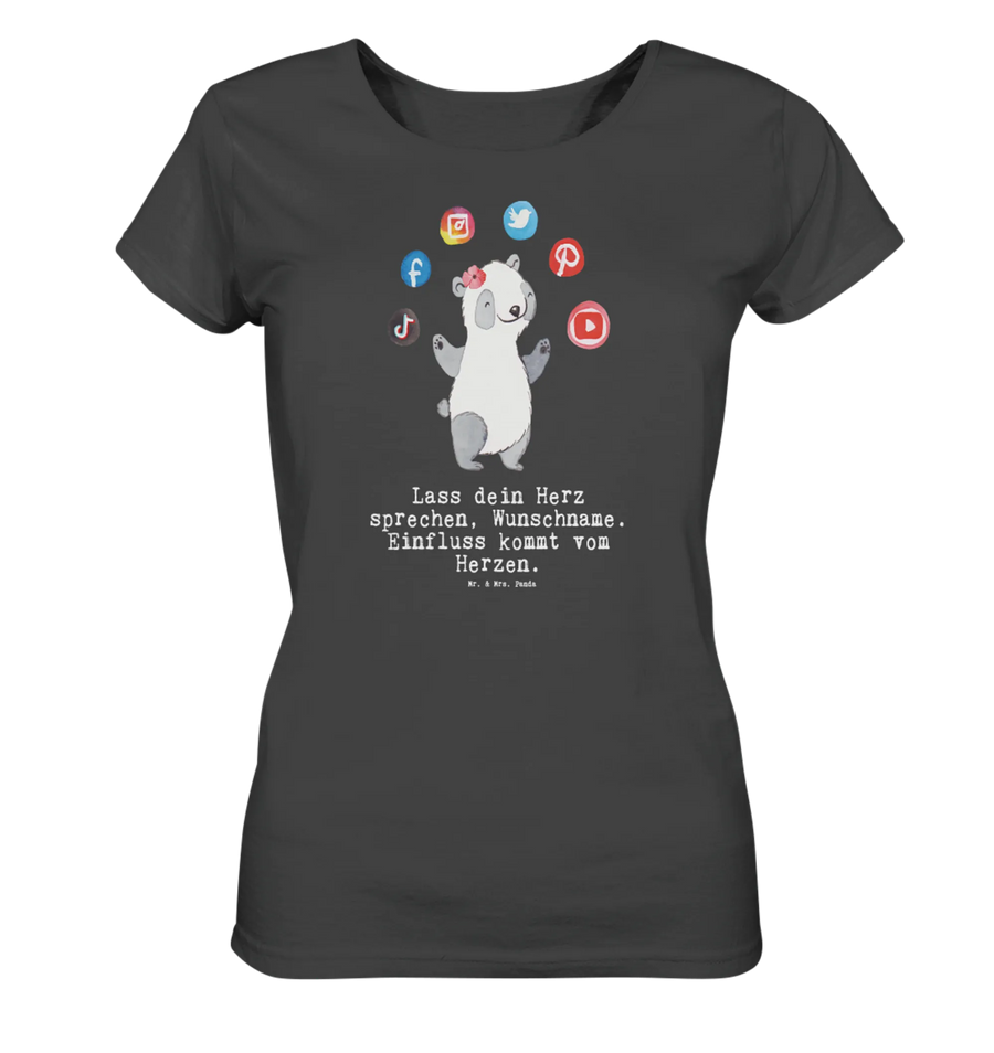 Entdecke unser personalisiertes Shirt für Damen mit dem süßen Motiv "Influencerin mit Herz" aus der kreativen Berufe Kollektion von Mr. & Mrs. Panda!