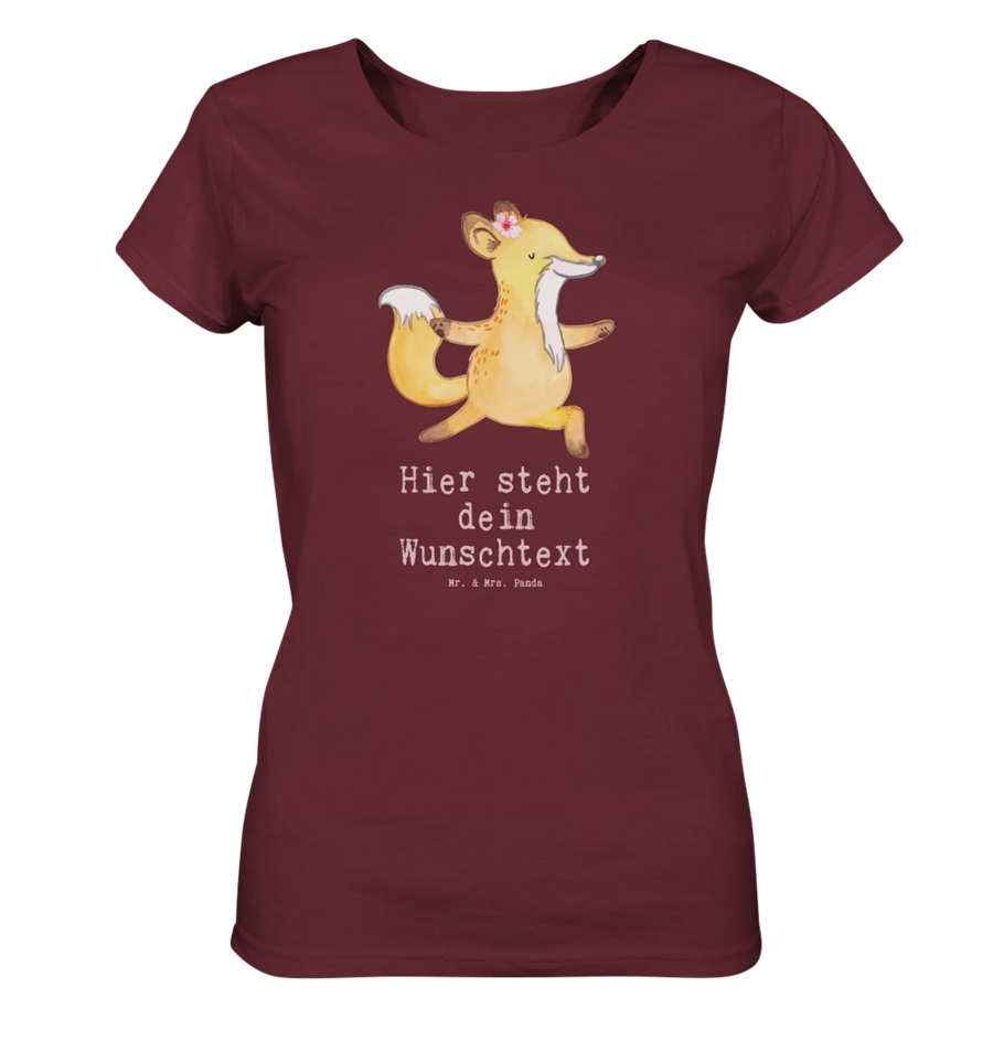 Die Kombination aus niedlichem Fuchs-Motiv in einer dynamischen Yoga-Position und dem lustigen Slogan sorgt dafür, dass Du auf jeden Fall zu einem Hingucker wirst. Ideal auch für Geburtstagsgeschenke, Abschiedsfeiern oder einfach, um einer besonderen Kinderyogalehrerin eine Freude zu machen.