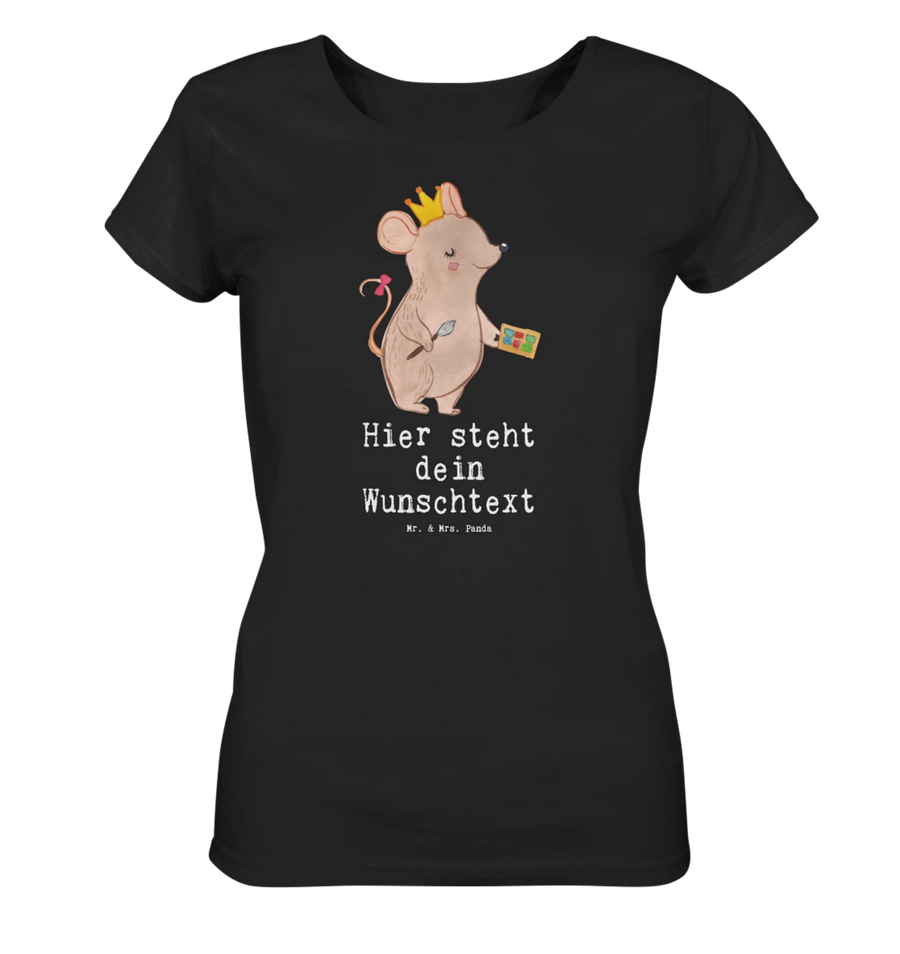 Entdecke das perfekte Geschenk für Beauty-Liebhaber mit unserem personalisierten Shirt für Damen – Make Up Artist mit Herz! Dieses bezaubernde T-Shirt ist nicht nur ein echter Blickfang, sondern auch ein Zeichen der Wertschätzung für alle Make-Up-Artists, Maskenbildner und Kosmetiker. Mit dem liebevoll gestalteten Motiv, das eine süße Maus mit einer Krone und Schminkutensilien zeigt, bringst du die Leidenschaft für den Beruf zum Ausdruck.