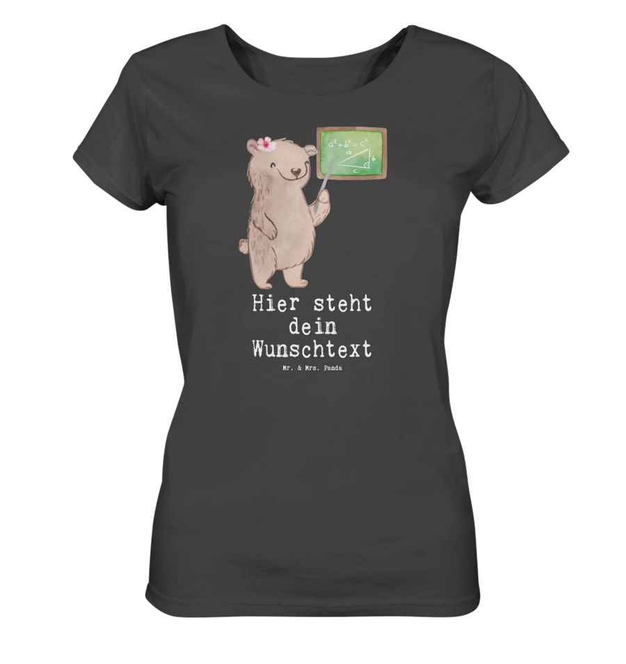 Das Personalisiertes Shirt Damen mit dem liebevollen Motiv "Mathematiklehrerin mit Herz" von Mr. & Mrs. Panda ist das perfekte Geschenk für alle, die Mathematik lieben und diese Leidenschaft mit anderen teilen möchten.