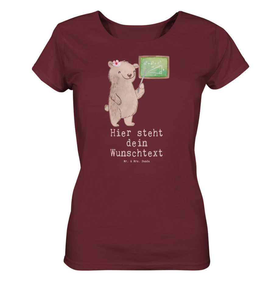 Das Personalisiertes Shirt Damen mit dem liebevollen Motiv "Mathematiklehrerin mit Herz" von Mr. & Mrs. Panda ist das perfekte Geschenk für alle, die Mathematik lieben und diese Leidenschaft mit anderen teilen möchten.