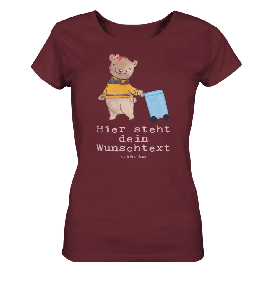 Das personalisierte Shirt Damen mit dem Motiv 'Müllwerkerin mit Herz' ist ein einzigartiges und liebevolles Geschenk für all jene Frauen, die mit Hingabe in der Kreislauf- und Abfallwirtschaft tätig sind. Unsere kleine Bärendame zelebriert diesen oft übersehenen Beruf, der für unsere Gesellschaft von extrem wichtiger Bedeutung ist.