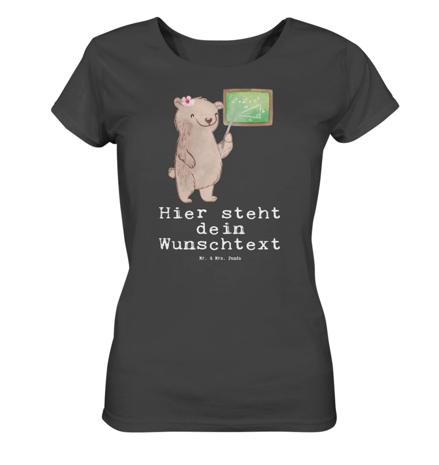 Das personalisierte Shirt Damen „Nachhilfelehrerin Mathe mit Herz“ ist das perfekte Geschenk für alle Mathe-Nachhilfelehrerinnen in deinem Leben! Mit einem zauberhaften Motiv, das einen süßen Bären zeigt, der vor einer Schultafel steht, wird dieses Shirt zum Hingucker in jedem Klassenzimmer oder zu Hause.