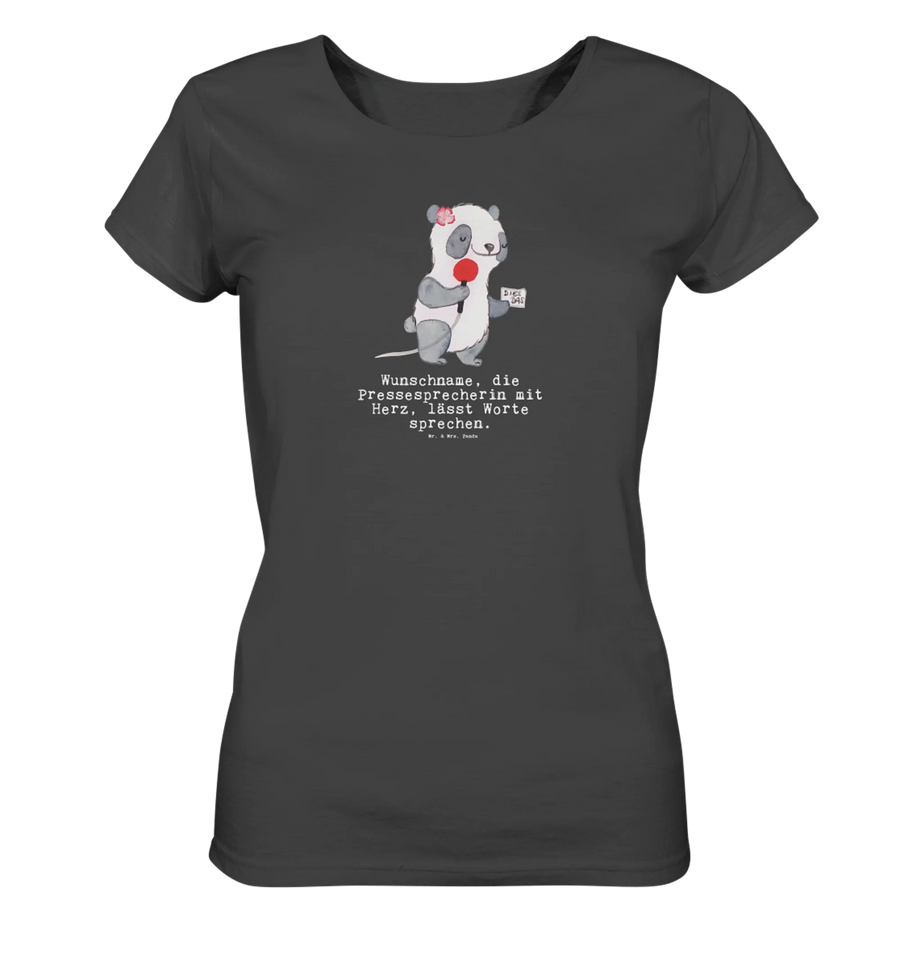 Das Personalisiertes Shirt Damen mit dem Motiv "Pressesprecherin mit Herz" ist das perfekte Geschenk für alle, die die Welt der Kommunikation lieben! Egal, ob zum Junggesellenabschied, Jubiläum oder zum Geburtstag, dieses T-Shirt mit dem liebevollen Panda-Motiv wird immer ein echter Hingucker sein.