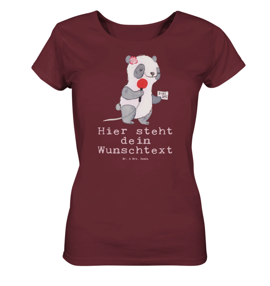 Unser personalisiertes Shirt für Damen mit dem liebevollen Motiv "Pressesprecherin mit Herz" ist das perfekte Geschenk für alle, die im Bereich der Öffentlichkeitsarbeit tätig sind. Ob zum Berufseinstieg, zur Beförderung, zum Jubiläum oder einfach nur um Danke zu sagen – dieses Shirt ist ein echter Hingucker! Das Motiv, liebevoll von Mrs. Panda handgezeichnet, zeigt einen süßen Panda mit einem Mikrofon, der die Leidenschaft und das Engagement einer Pressesprecherin verkörpert.