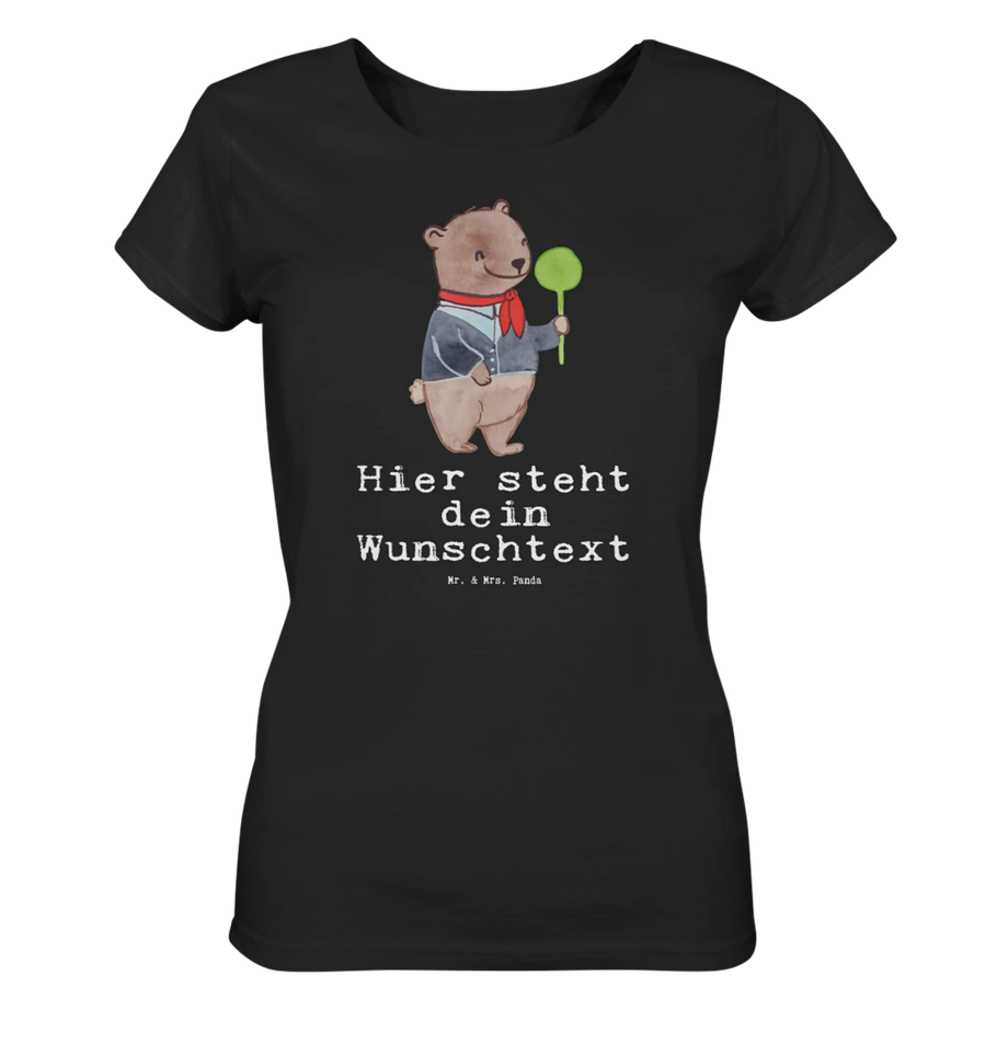 Das personalisierte Shirt für Damen mit dem bezaubernden Motiv 'Schaffnerin mit Herz' von Mr. & Mrs. Panda ist das perfekte Geschenk für all jene, die den Beruf der Schaffnerin auf liebevolle Weise zelebrieren möchten.