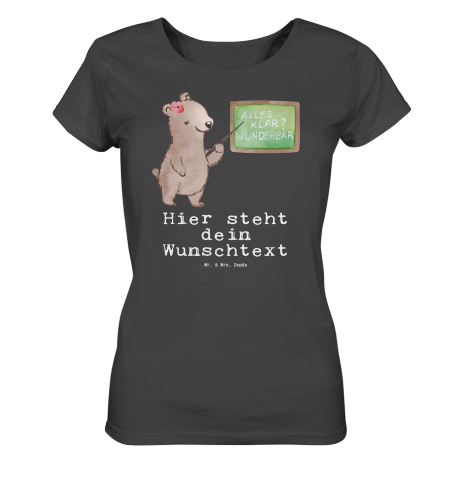Das personalisierte Shirt für Damen von Mr. & Mrs. Panda überzeugt durch seinen einzigartigen Stil und hohen Tragekomfort. Hergestellt aus 100% BIO-Baumwolle ist es sanft zur Haut und bietet gleichzeitig die Möglichkeit, deinen Wunschtext oder Namen hinzuzufügen. Die fröhlichen Motive und Sprüche bringen Farbe in deinen Frühling und Sommer! In verschiedenen Größen erhältlich, passt es perfekt zu jeder Figur und sorgt mit seinem superweichen Stoff dafür, dass du dich rundum wohlfühlst. Beachte unsere Größentabelle, um die passende Größe zu finden. Jedes Shirt wird von Hand für dich gefertigt, was es zu einem besonderen Geschenk macht. Für die Pflege einfach bei maximal 30 °C in die Waschmaschine geben und sanfte Reinigungsmittel nutzen.