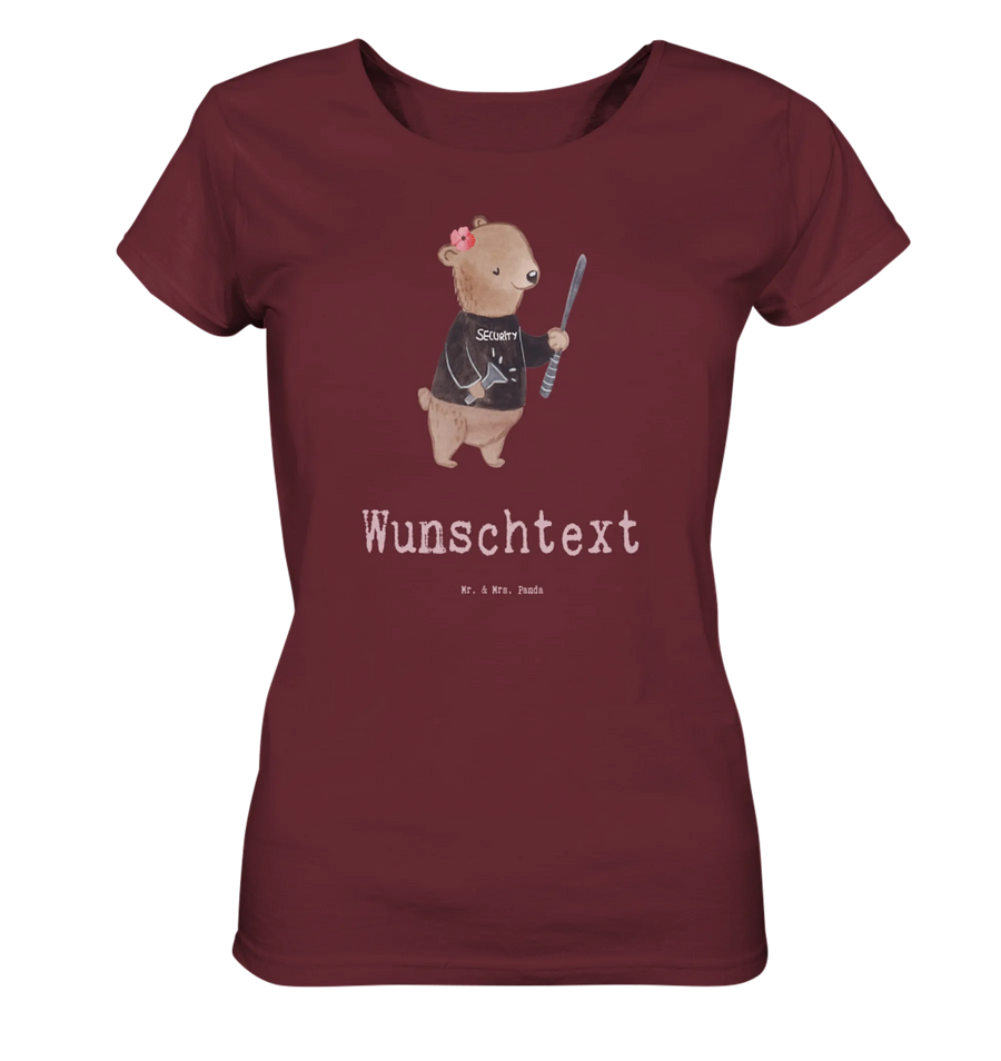 Entdecke das personalisierte Shirt für Damen mit dem liebevollen Motiv "Sicherheitsdienstmitarbeiterin mit Herz" aus der kreativen Berufe-Kollektion von Mr. & Mrs. Panda!