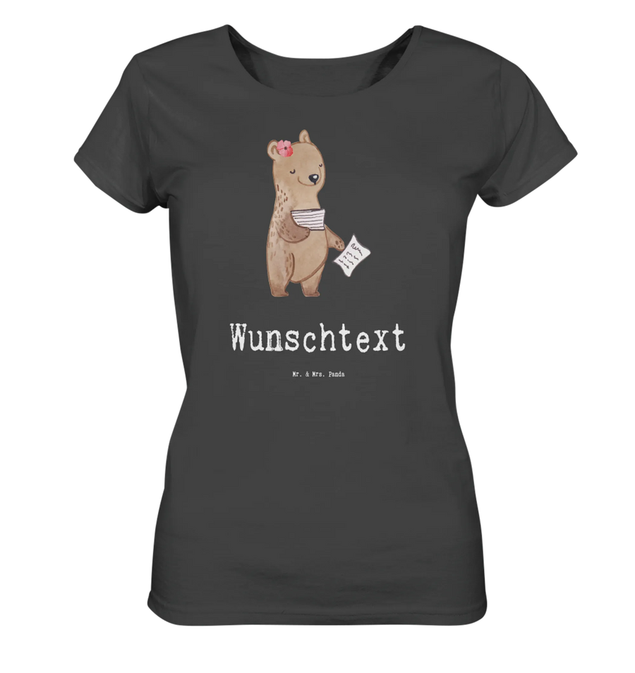 Das personalisierte Shirt Damen "Steuerberaterin mit Herz" aus der Berufe Kollektion von Mr. & Mrs. Panda ist der perfekte Begleiter für alle Steuerberaterinnen. Mit viel Liebe zum Detail wurde das süße, weibliche Bärenmotiv mit einem Stapel an Unterlagen in der Hand handgezeichnet.