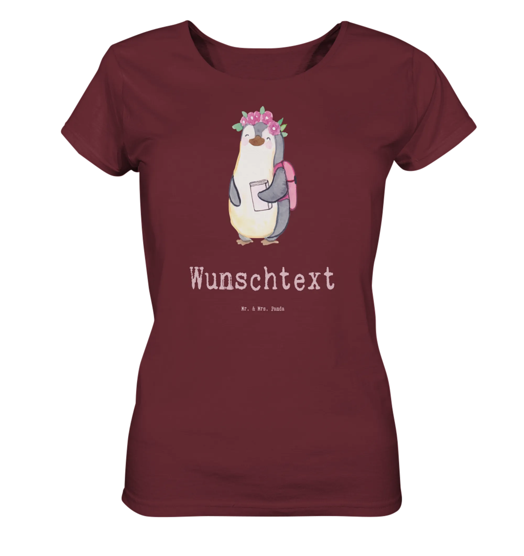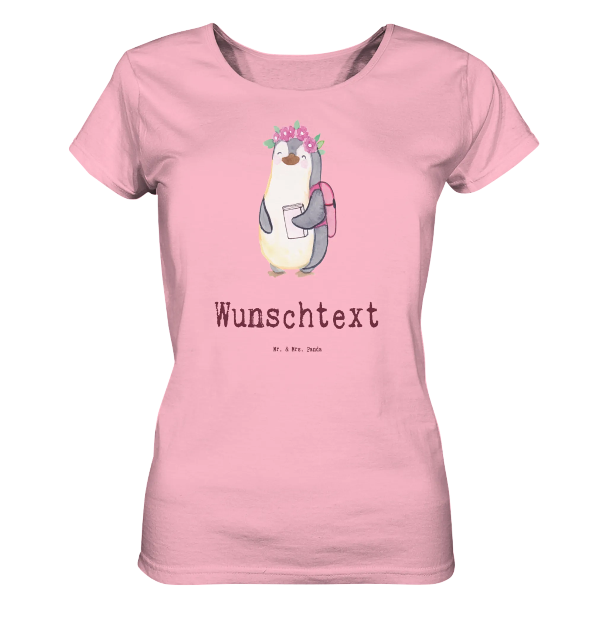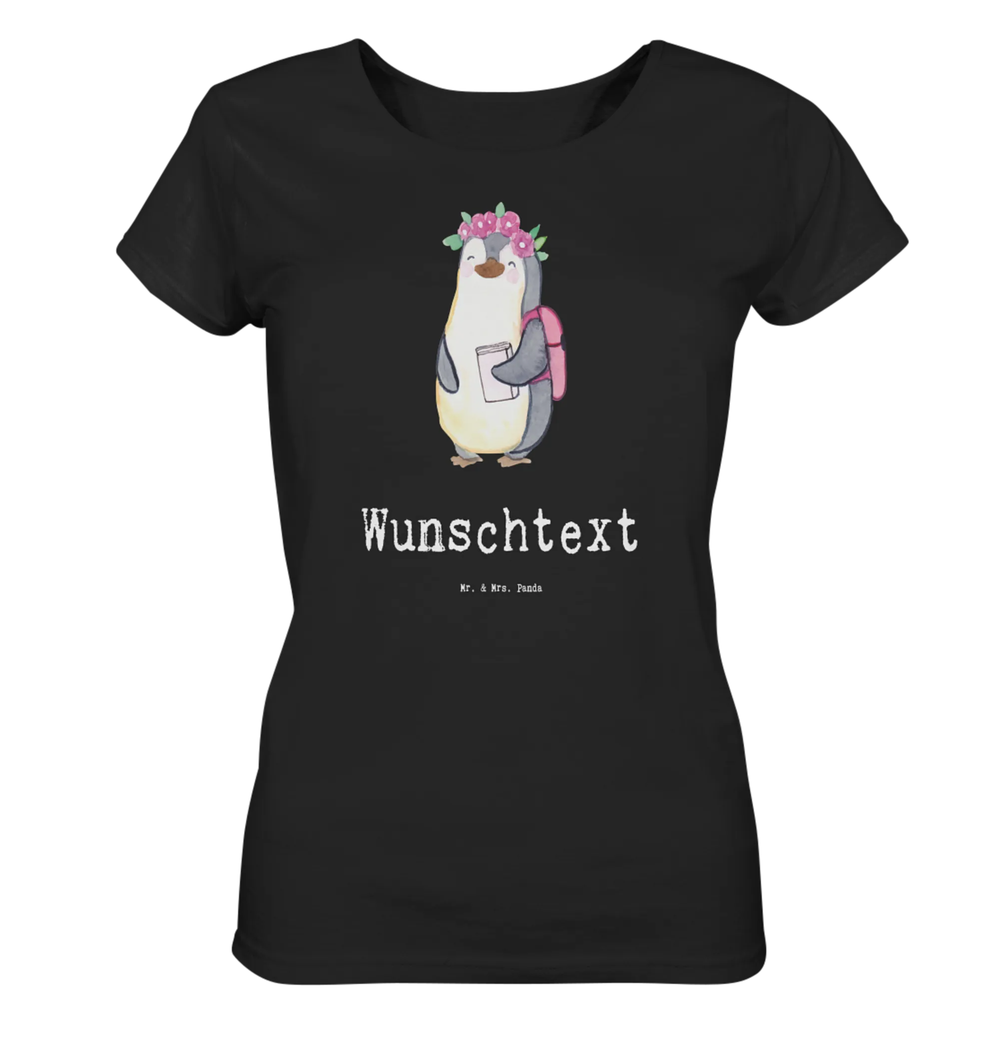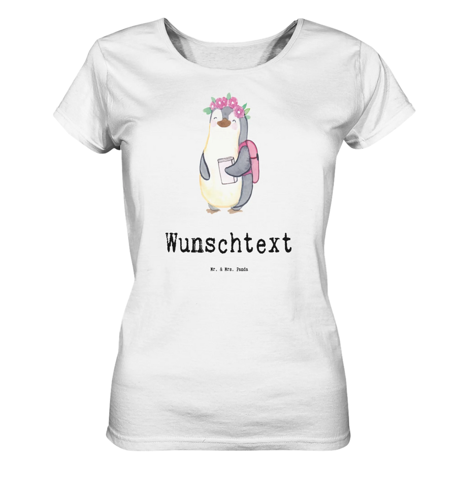 Das personalisierte Shirt für Damen "Studentin mit Herz" aus der Kollektion Berufe ist das perfekte Geschenk für jede Studentin. Egal, ob zum Geburtstag, zum Jubiläum oder als lustiges Mitbringsel zum Junggesellenabschied – dieses Shirt macht einfach Freude! Das süße Design zeigt einen weiblichen Pinguin mit einem Rucksack, der stolz zur Uni geht. Damit zeigst du, dass du an sie denkst und ihren Bildungserfolg wertschätzt.