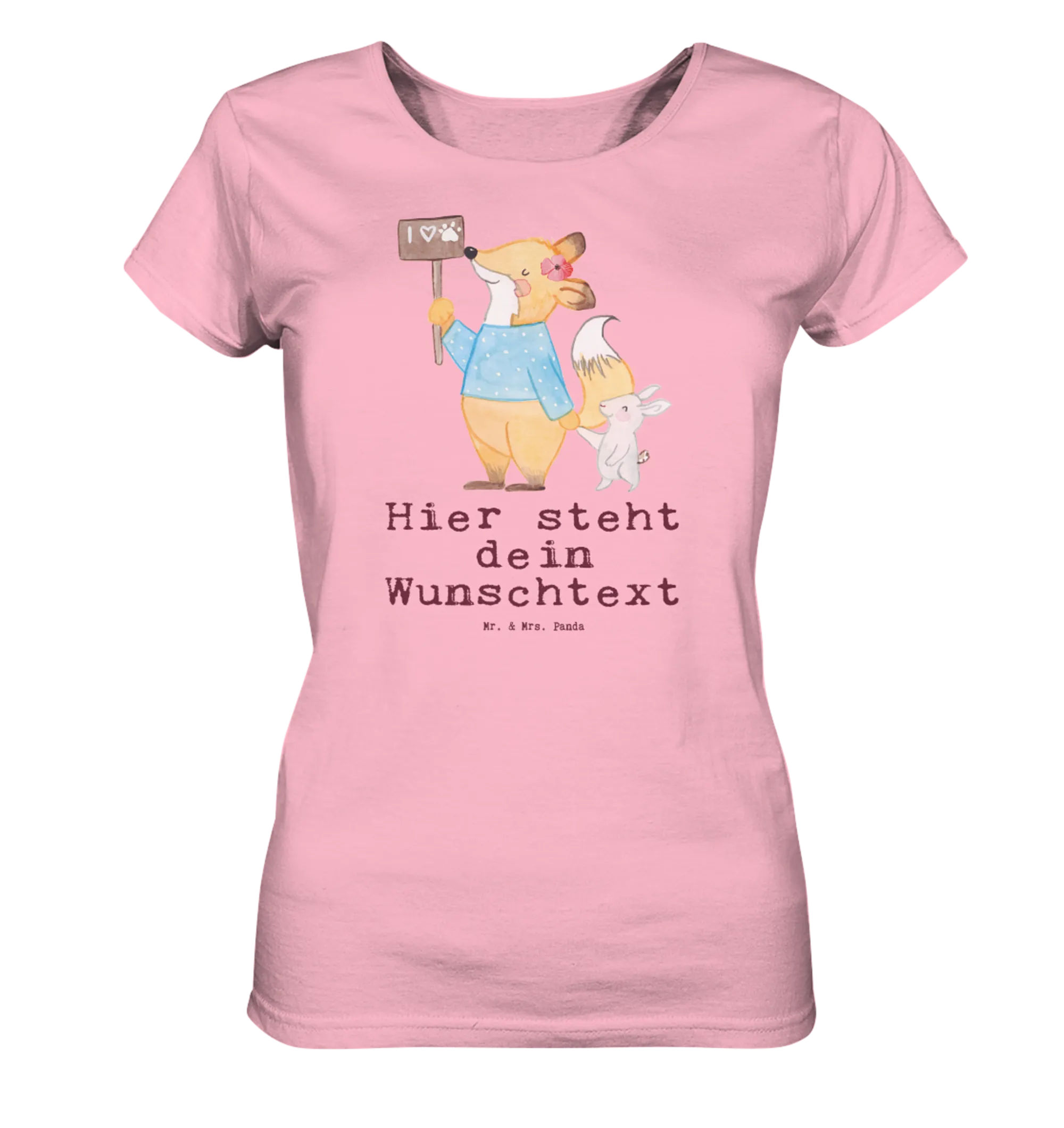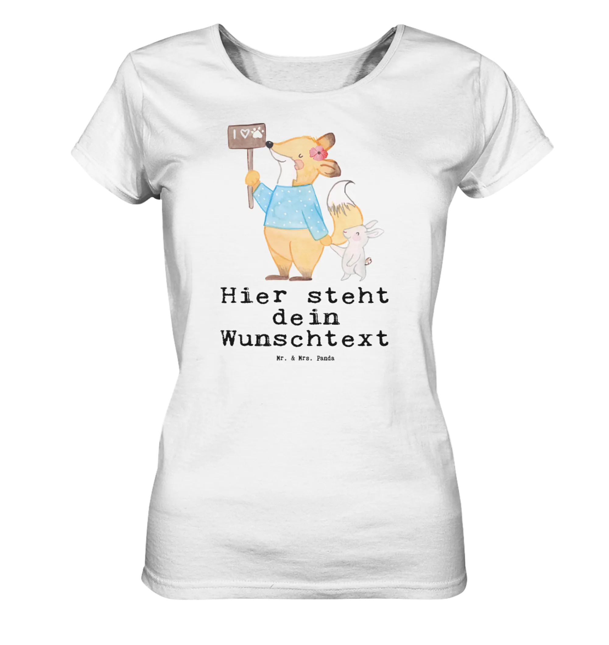 Entdecke das Personalisiertes Shirt Damen 'Tierschützerin mit Herz' aus der bearbeiteten Kollektion Berufe von Mr. & Mrs. Panda! Dieses T-Shirt ist nicht nur ein modisches Statement, sondern auch ein liebevolles Geschenk für alle Frauen, die Tiere lieben und sich für den Tierschutz einsetzen. Der süße Fuchs auf dem Shirt, der einen kleinen Hasen beschützt, strahlt Wärme und Zuneigung aus und wird sicherlich Herzen erobern.