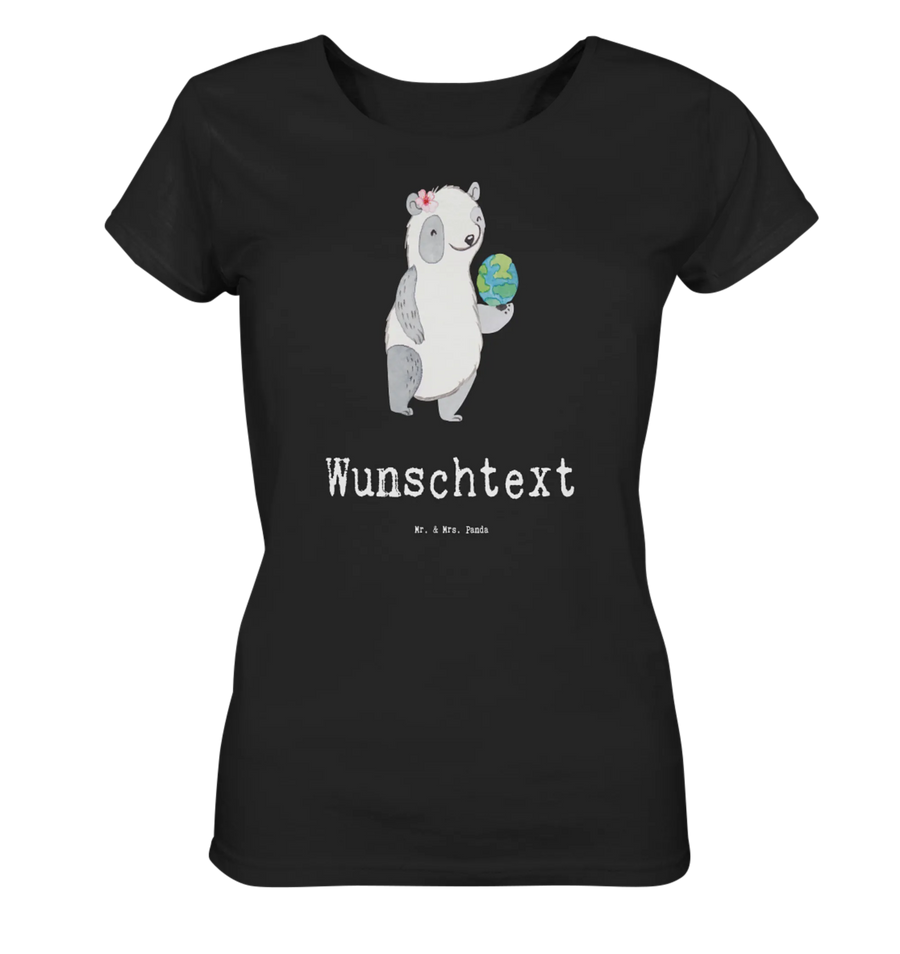 Das personalisierte Shirt für die Touristikkauffrau mit Herz ist das perfekte Geschenk, wenn Du jemandem eine besondere Freude machen möchtest! Dieses T-Shirt aus 100% hochwertiger Baumwolle ist nicht nur bequem, sondern auch ein echter Hingucker, dank des süßen Motivs eines weiblichen Pandas mit einer Weltkugel in der Hand. Es wird Teil der kreativen Berufe Kollektion von Mr. & Mrs. Panda und bringt Freude in den Arbeitsalltag Deiner Lieblings-Touristikkauffrau.