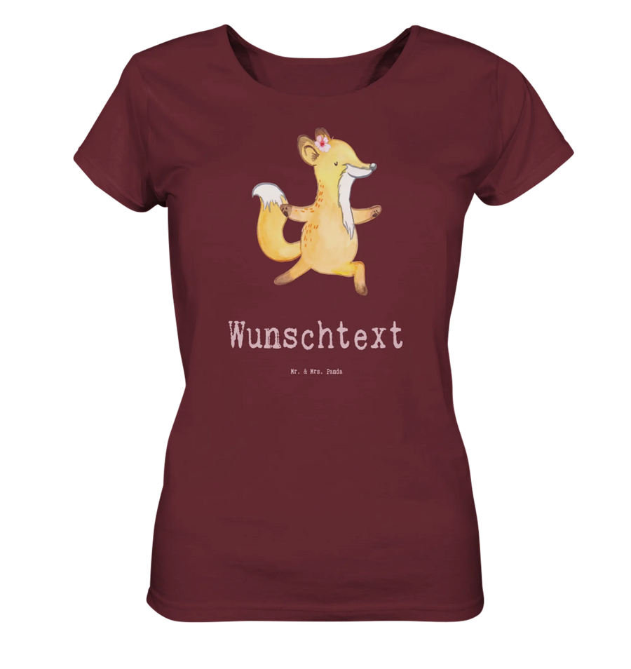 Design & Wirkung: Die burgunderrote Farbe verleiht dem Shirt eine elegante, luxuriöse Ausstrahlung. Das Motiv mit dem weiblichen Fuchs wirkt freundlich und inspirierend – perfekt für Yoga-Lehrerinnen, die ihre Leidenschaft stolz tragen möchten.