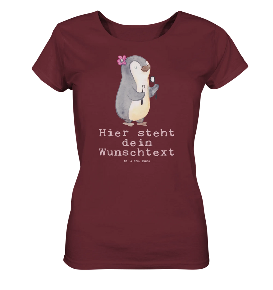 Das personalisierte Shirt für Damen von Mr. & Mrs. Panda überzeugt durch seinen einzigartigen Stil und hohen Tragekomfort. Hergestellt aus 100% BIO-Baumwolle ist es sanft zur Haut und bietet gleichzeitig die Möglichkeit, deinen Wunschtext oder Namen hinzuzufügen. Die fröhlichen Motive und Sprüche bringen Farbe in deinen Frühling und Sommer! In verschiedenen Größen erhältlich, passt es perfekt zu jeder Figur und sorgt mit seinem superweichen Stoff dafür, dass du dich rundum wohlfühlst. Beachte unsere Größentabelle, um die passende Größe zu finden. Jedes Shirt wird von Hand für dich gefertigt, was es zu einem besonderen Geschenk macht. Für die Pflege einfach bei maximal 30 °C in die Waschmaschine geben und sanfte Reinigungsmittel nutzen.