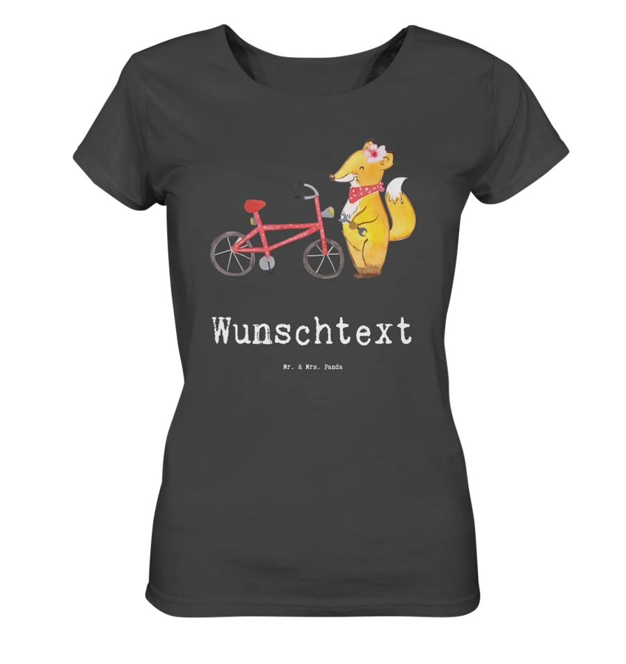 Ob zum Geburtstag, zum Jubiläum, oder einfach nur als nette Geste - dieses Shirt wird mit Sicherheit für Freude sorgen. Das süße Design zeigt einen sympathischen Fuchs mit einem Schraubenschlüssel, der an einem Fahrrad schraubt und spricht die Herzen aller Fahrradliebhaber an.