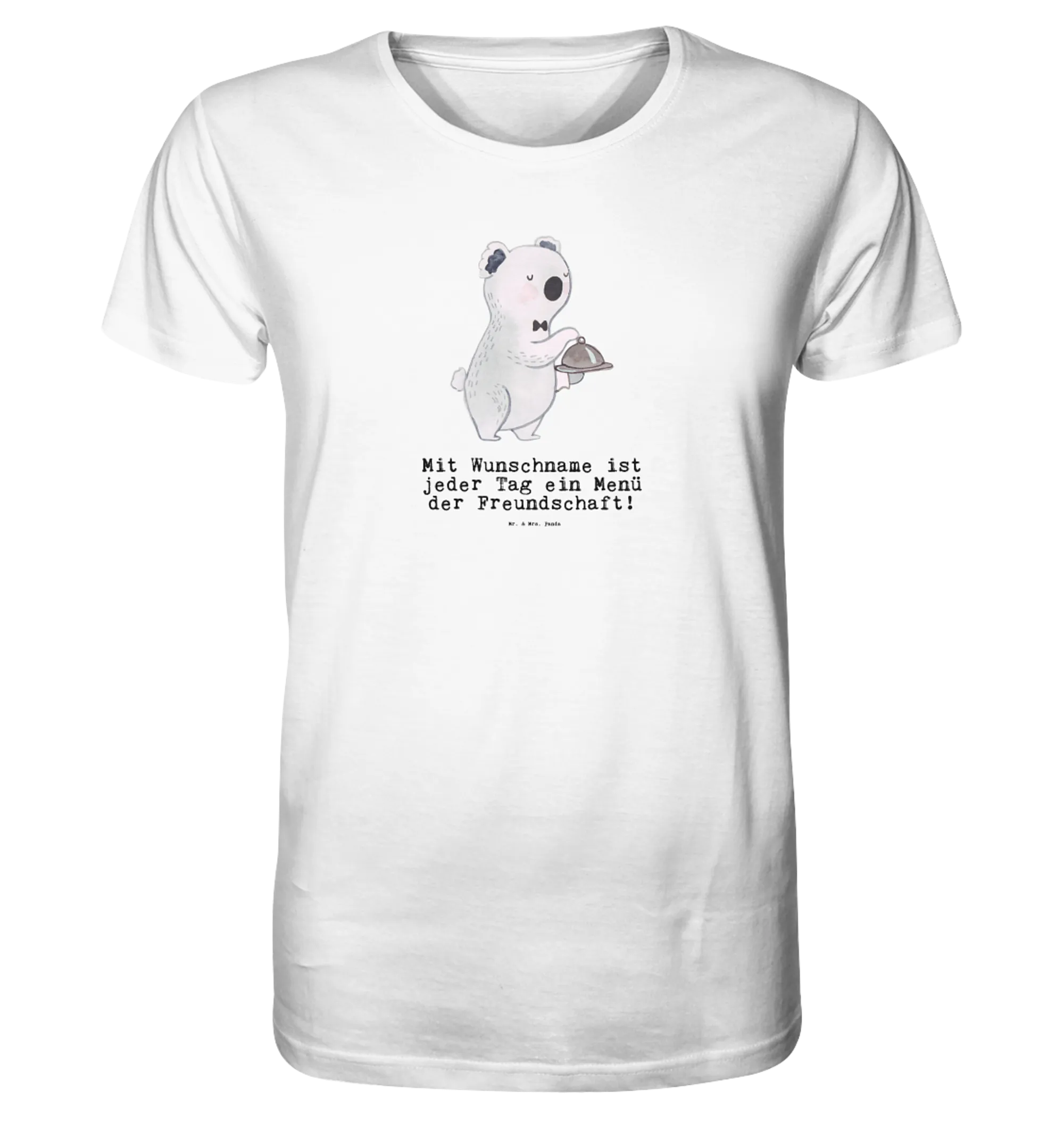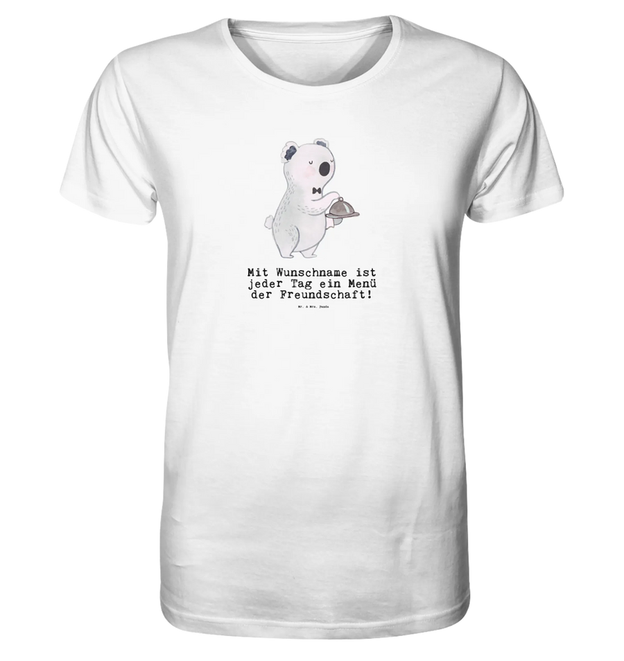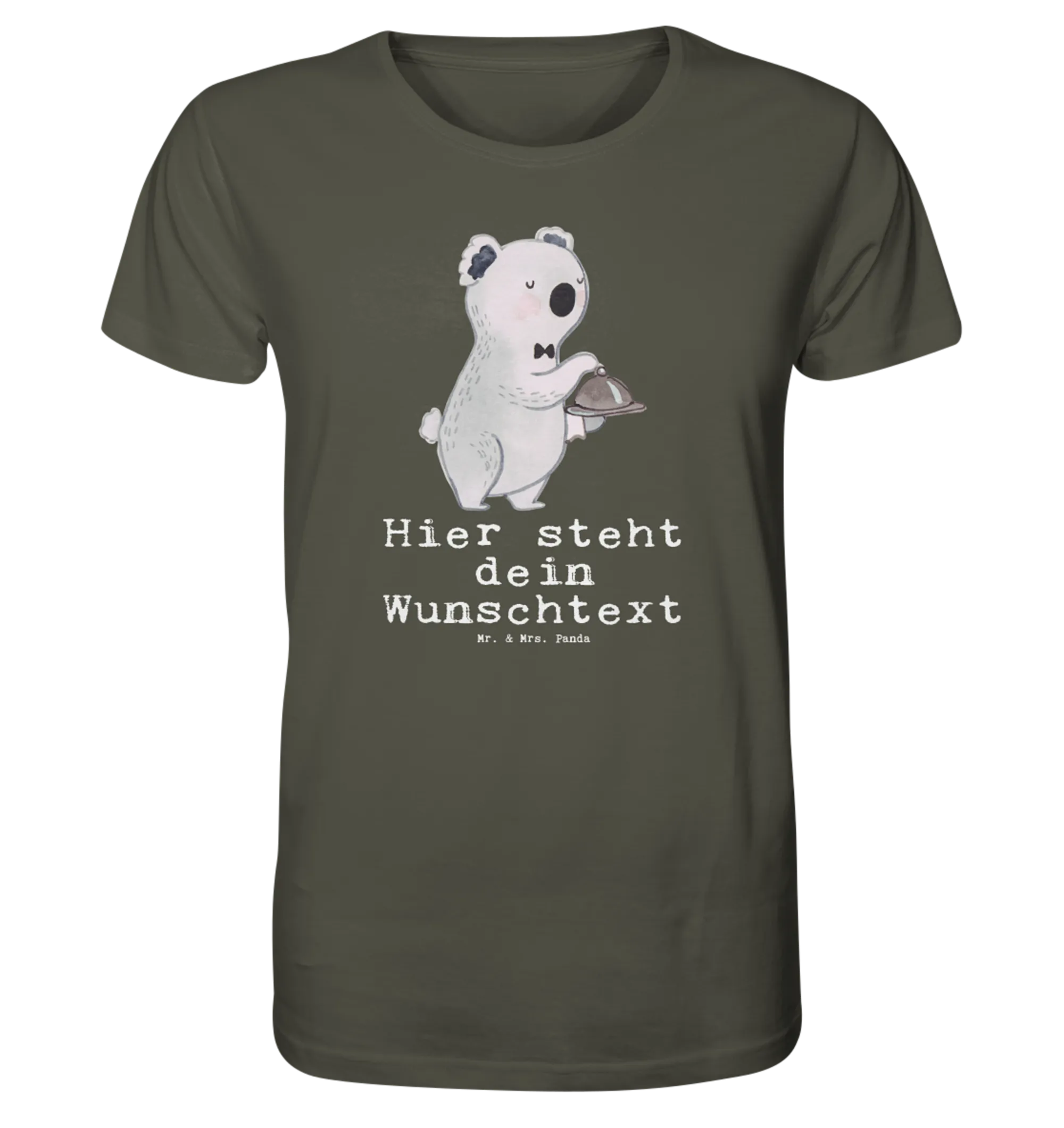 Das personalisierte Shirt "Kellner mit Herz" ist das perfekte Geschenk für alle, die im Service-Bereich arbeiten oder einfach nur große Leidenschaft für ihren Beruf haben. Ob zu einem Junggesellenabschied, einem Geburtstag oder einem Jubiläum – mit diesem Shirt bringst du ein Lächeln in das Gesicht des Beschenkten. Das liebevoll gestaltete Motiv, das einen süßen Koala zeigt, der köstliches Essen serviert, macht dieses Shirt zu etwas ganz Besonderem. Außerdem zeigt der Slogan "Du bist nur ein halber Mensch, wenn du kein Kellner bist" auf humorvolle Weise, wie wichtig dieser Beruf ist.