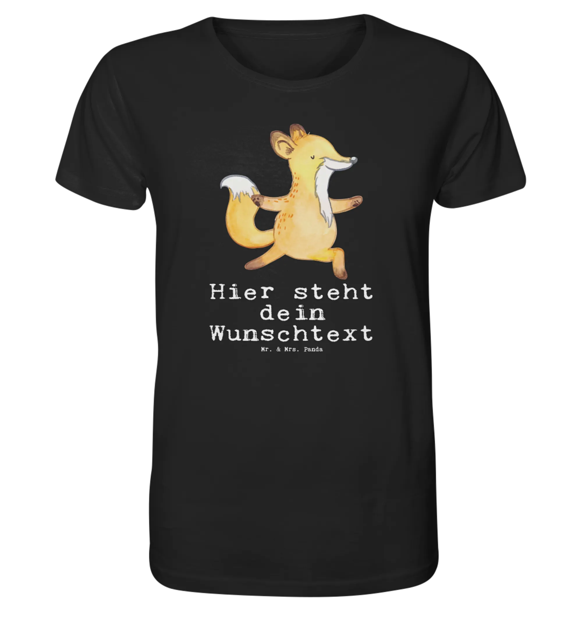 Das Personalisiertes Shirt Herren mit dem einzigartigen Motiv "Kinderyogalehrer mit Herz" aus der liebevollen Berufe Kollektion von Mr. & Mrs. Panda ist das perfekte Geschenk für jeden, der die Freude und Entspannung von Yoga an Kinder weitergeben möchte. Dieses Shirt ist nicht nur modisch und bequem, sondern auch ein kreativer Ausdruck des Berufs. Du bist nur ein halber Mensch, wenn du kein Kinderyogalehrer bist. Das Design zeigt einen niedlichen, handgezeichneten Fuchs, der eine Yoga-Stellung macht, und zwar den Krieger. In Zeiten des Jubiläums, beim Junggesellenabschied oder zu Geburtstagen ist dieses T-Shirt ein echtes Highlight. Deinen Freunden, Kollegen oder Familienmitgliedern Freude zu schenken, war noch nie so einfach!