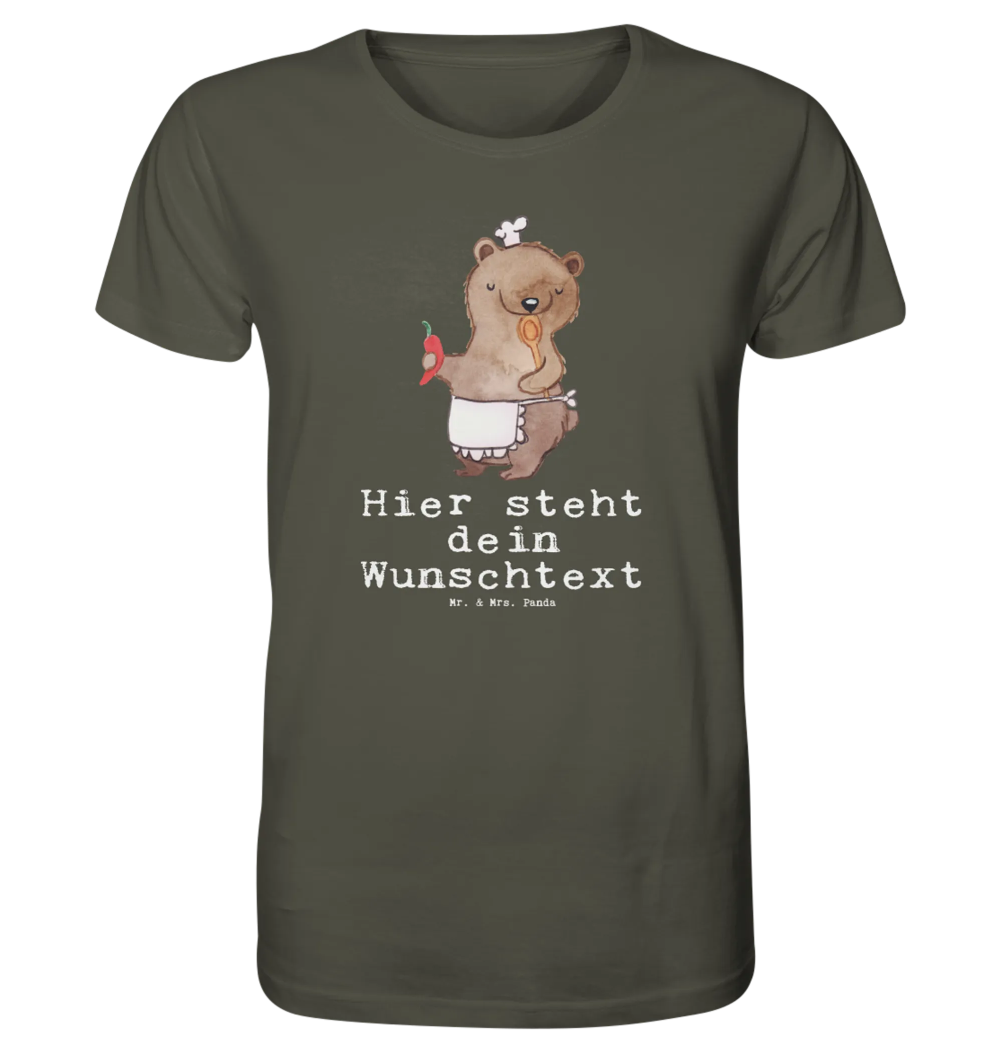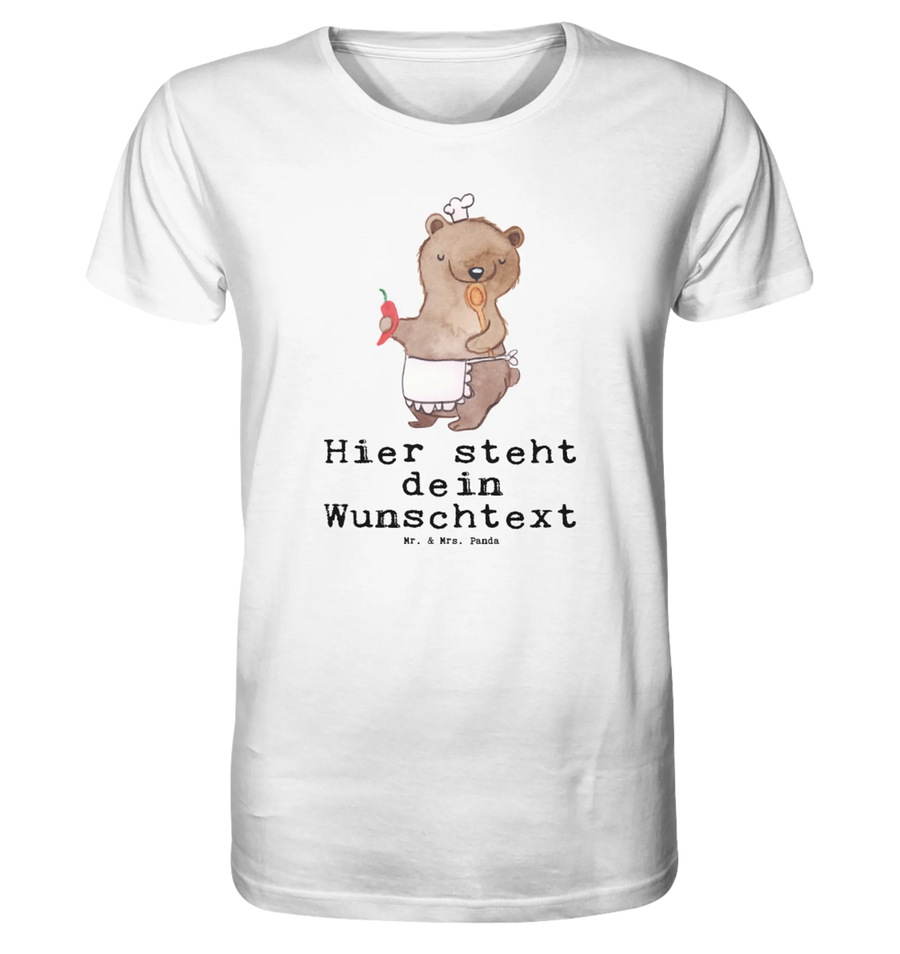 Suchst du das perfekte Geschenk für einen leidenschaftlichen Koch? Dann ist das personalisierte Shirt Herren mit dem Motiv "Koch mit Herz" genau das Richtige! Dieses wundervolle T-Shirt aus 100% Baumwolle schmückt ein fröhlicher Bär mit einer Kochmütze, der in einer Hand eine Chili und in der anderen einen Kochlöffel hält.