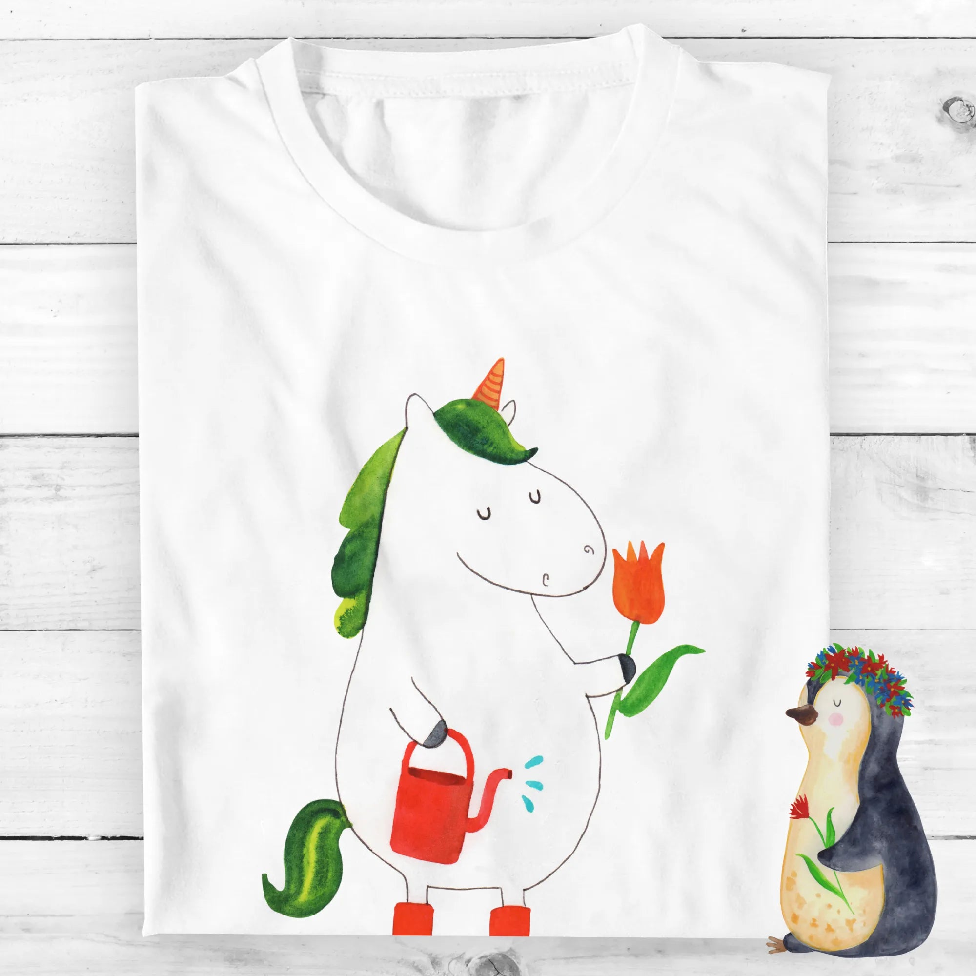 Warum ist dieses T-Shirt das perfekte Geschenk? Nun, es vereint die Leidenschaft für Einhörner mit einem fröhlichen Gärtner-Motiv, das das Herz eines jeden Blumenliebhabers höher schlagen lässt! Das niedliche Einhorn ist bereit, mit seiner Gießkanne durch den Garten zu fliegen und die Blumen zum Blühen zu bringen. Die liebevoll handgezeichneten Motive von Mrs. Panda machen dieses Shirt zu einem ganz besonderen Unikat.
