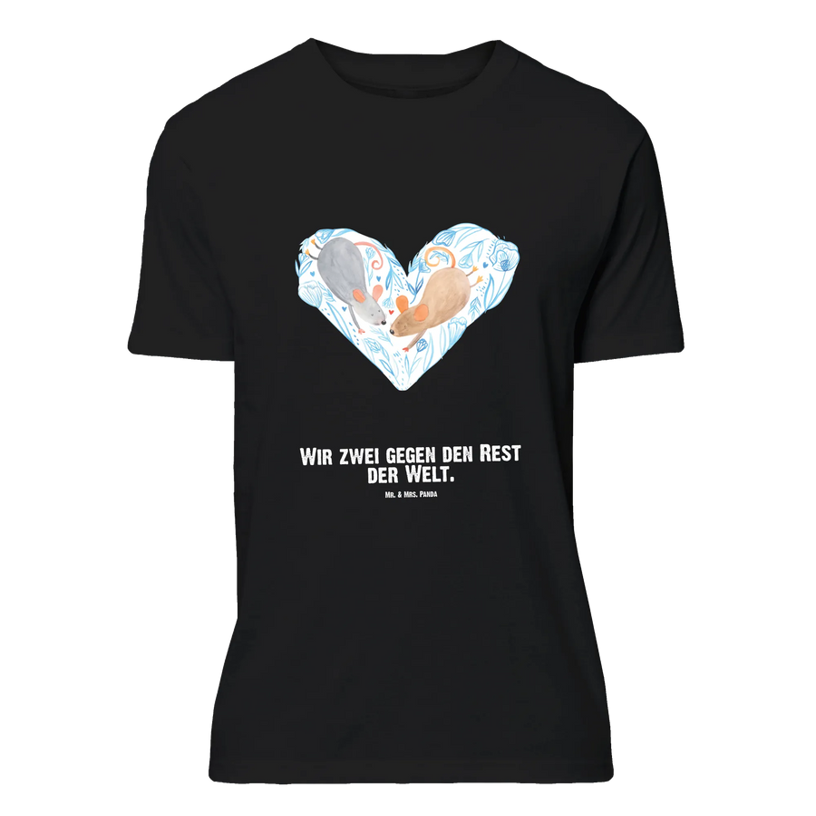 Das Größe L Personalisiertes T-Shirt mit dem zauberhaften Motiv "Mäuse Herz" aus der Kollektion Liebe von Mr. & Mrs. Panda ist das perfekte Geschenk für Paare, die ihre Liebe auf eine besondere Weise feiern möchten!