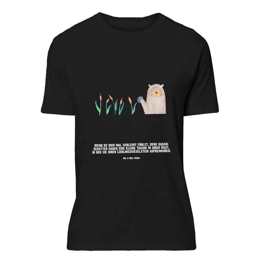 Das Motto des T-Shirts lautet: "Wenn du dich mal schlecht fühlst, denk daran: Seeotter haben eine kleine Tasche in ihrer Haut, in der sie ihren Lieblingskieselstein aufbewahren." Dieses Zitat ist nicht nur niedlich, sondern regt auch dazu an, die eigenen Schätze im Leben zu schätzen.