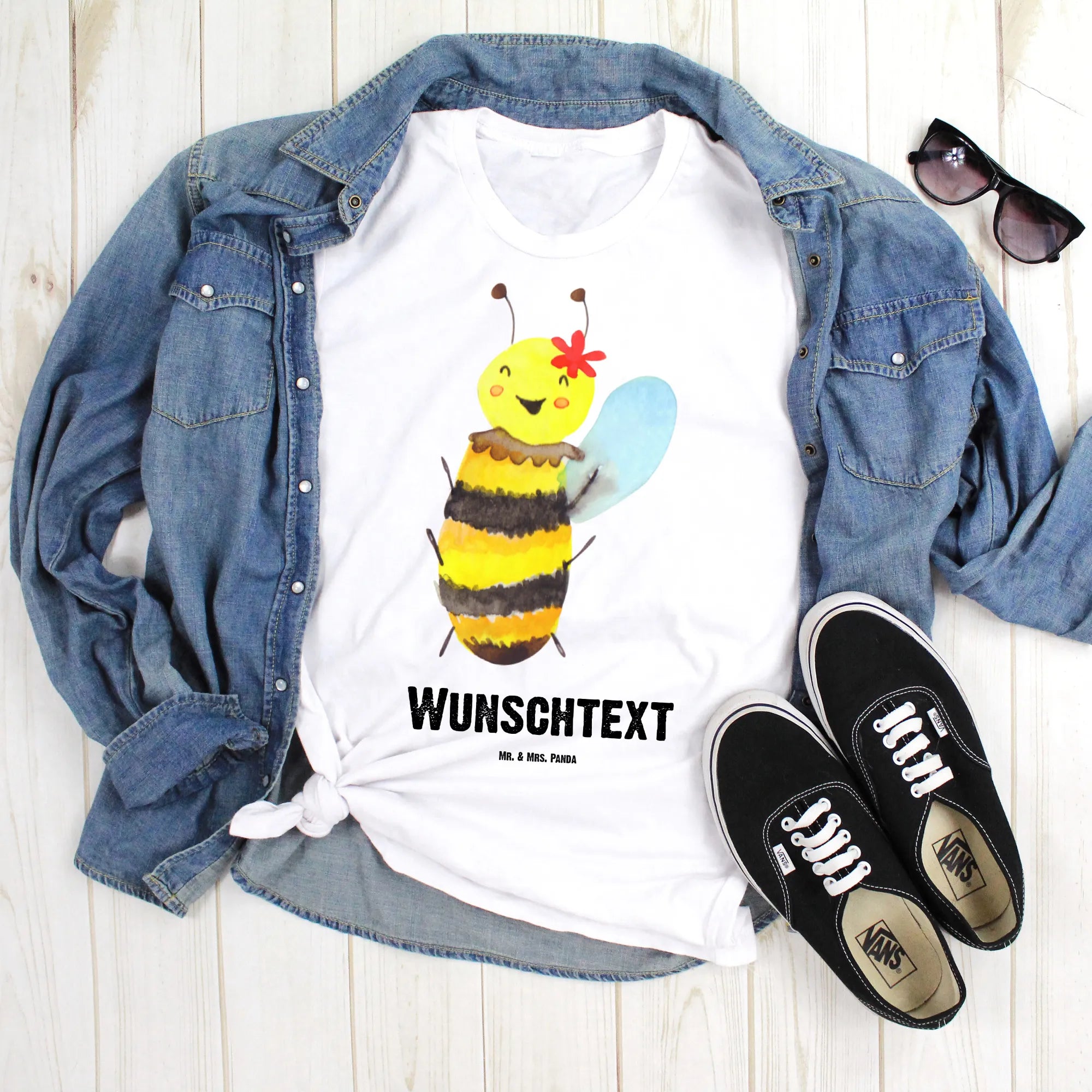 Entdecke das perfekte Geschenk mit unserem personalisierten Größe XL T-Shirt "Biene Happy" aus der Kollektion Biene von Mr. & Mrs. Panda!