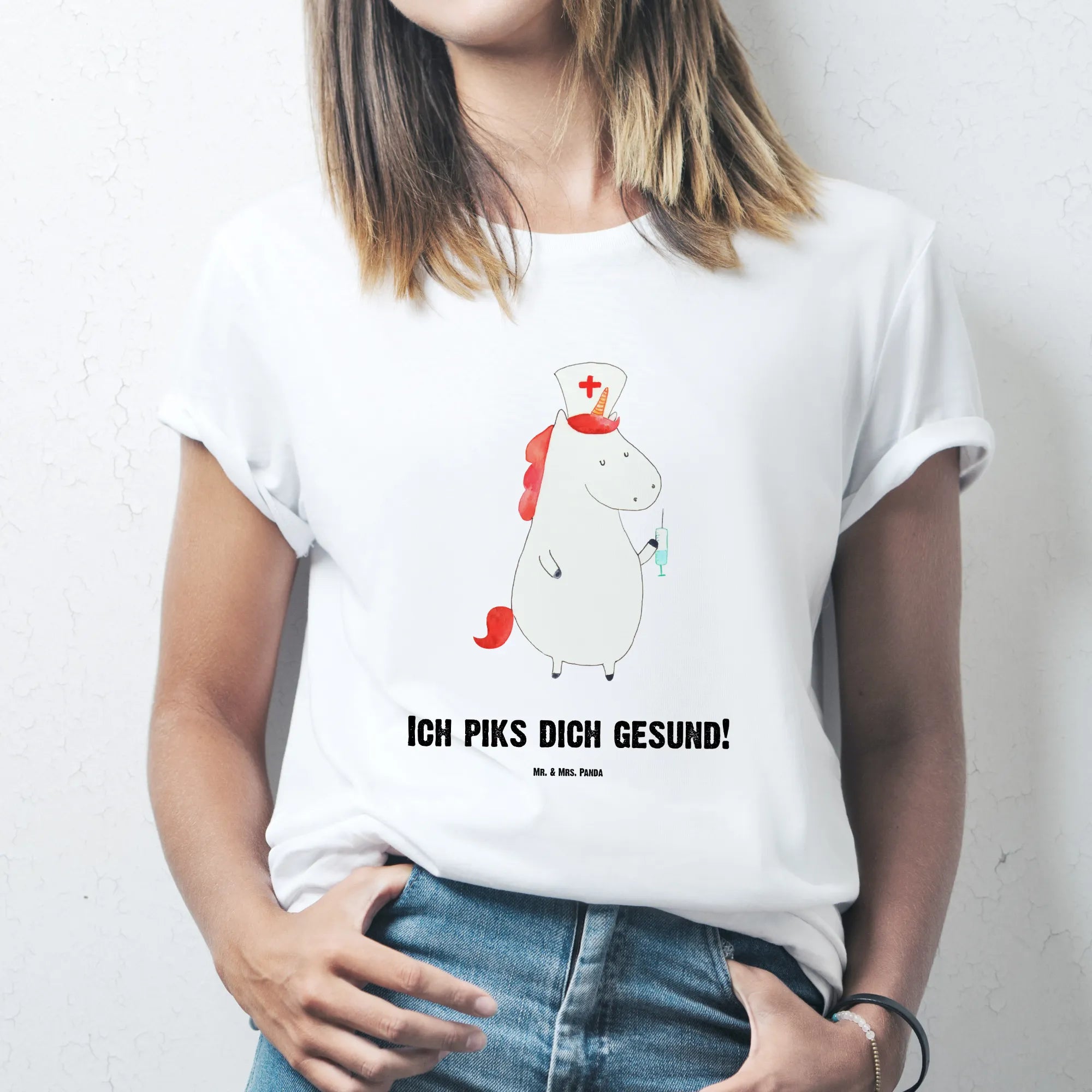 Das personalisierte T-Shirt 'Einhorn Krankenschwester' aus der Einhorn-Kollektion von Mr. & Mrs. Panda ist nicht nur ein weiteres T-Shirt, sondern ein aufregendes Geschenk, das Herzen höherschlagen lässt! Dieses besondere Shirt ist perfekt für alle Krankenschwestern und Krankenpflegerinnen, die ihren Alltag mit einem Hauch von Magie und Humor aufpeppen möchten. Mit dem zauberhaften Einhorn-Motiv und dem motivierenden Spruch 'Ich piks dich gesund!' wird jede Pflegekraft zum strahlenden Mittelpunkt und bewältigt auch die herausforderndsten Tage mit einem Lächeln.