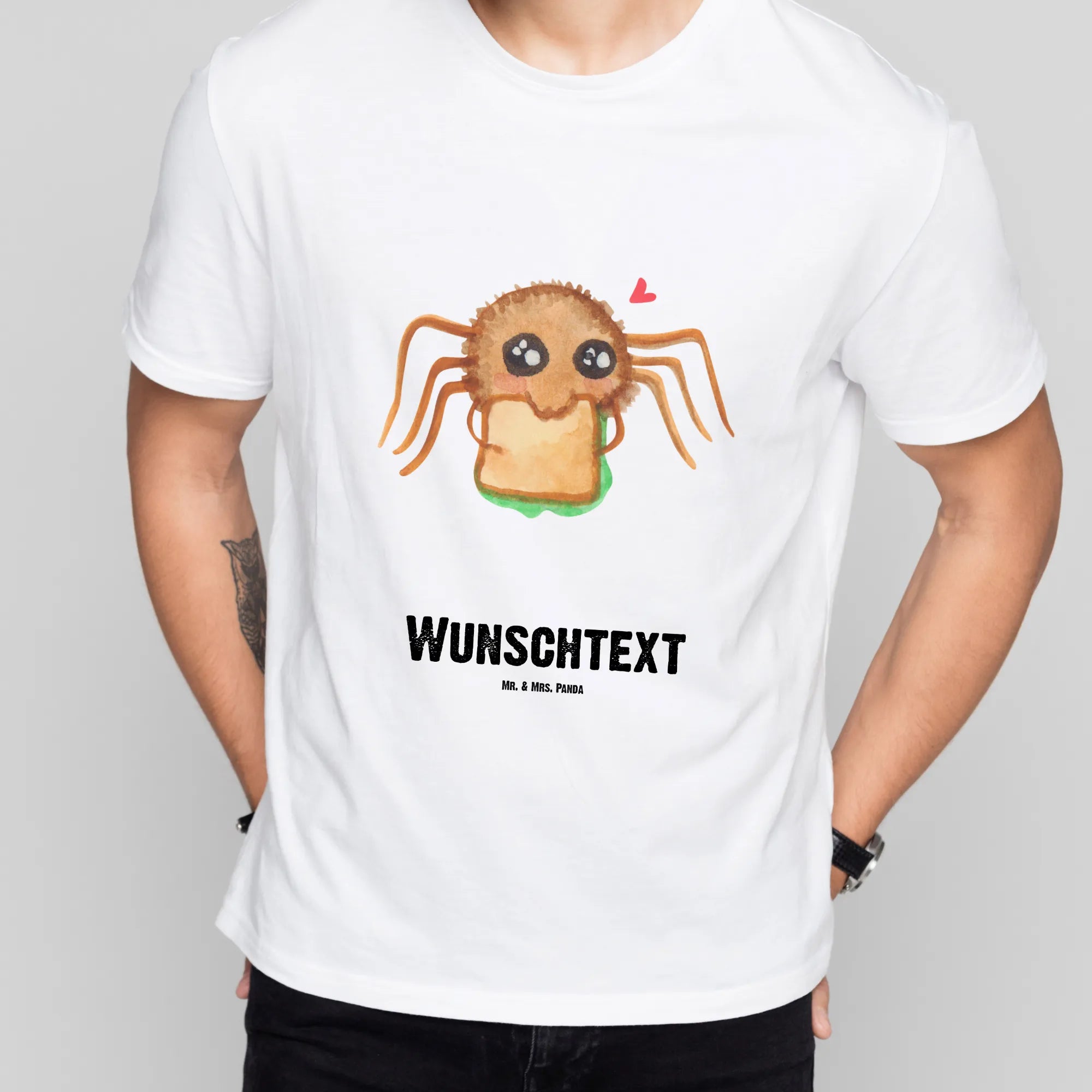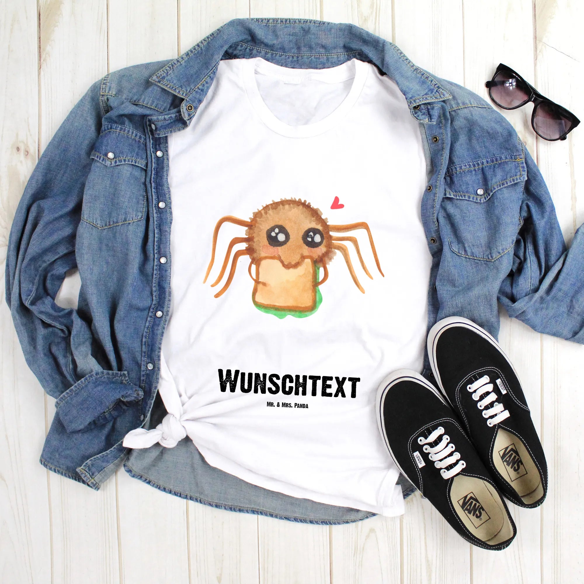 Schenk dir oder deinen Liebsten ein Stück Lebensfreude mit dem Größen XL personalisierten T-Shirt von Mr. & Mrs. Panda, das liebevoll zum Motiv "Spinne Agathe Sandwich" gestaltet ist!