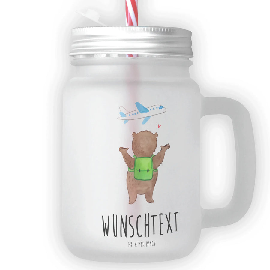 Personalisiertes Trinkglas Mason Jar Bär Flugzeug