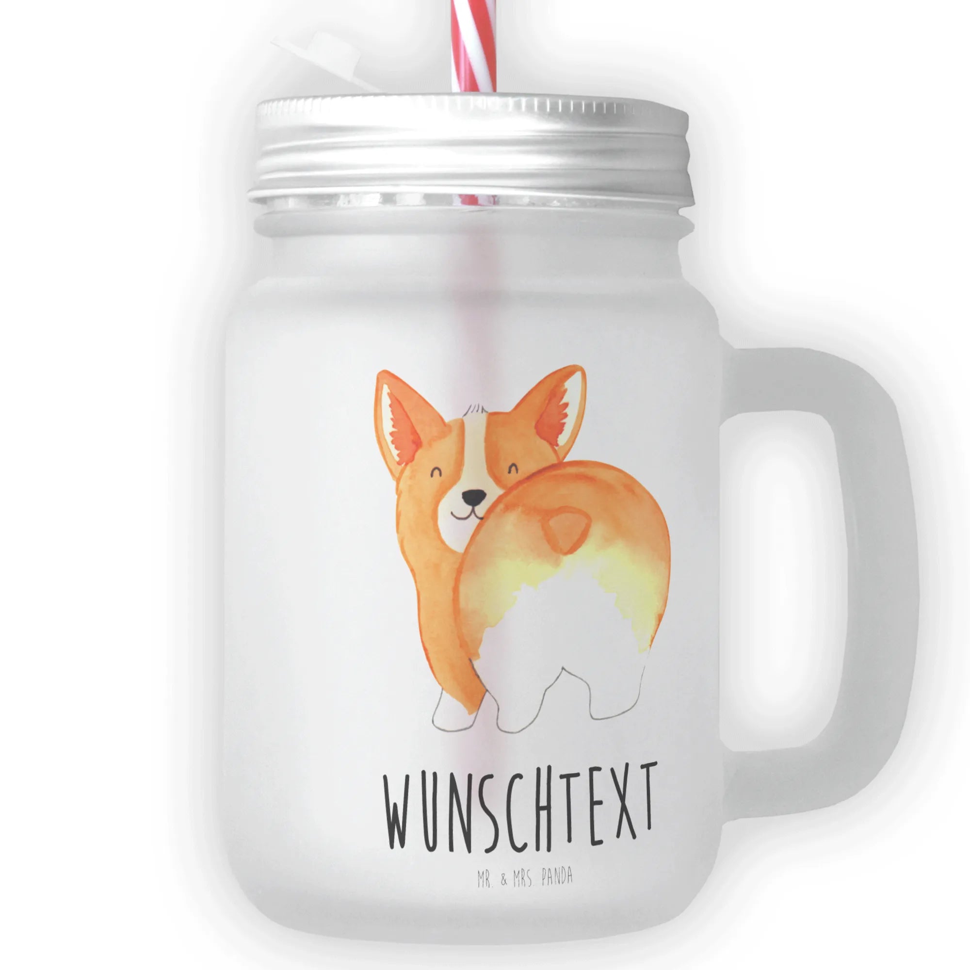 Entdecke das perfekte Geschenk für jeden Hundeliebhaber mit unserem personalisierten Trinkglas Mason Jar mit dem niedlichen Corgie Po-Motiv von Mr. & Mrs. Panda!