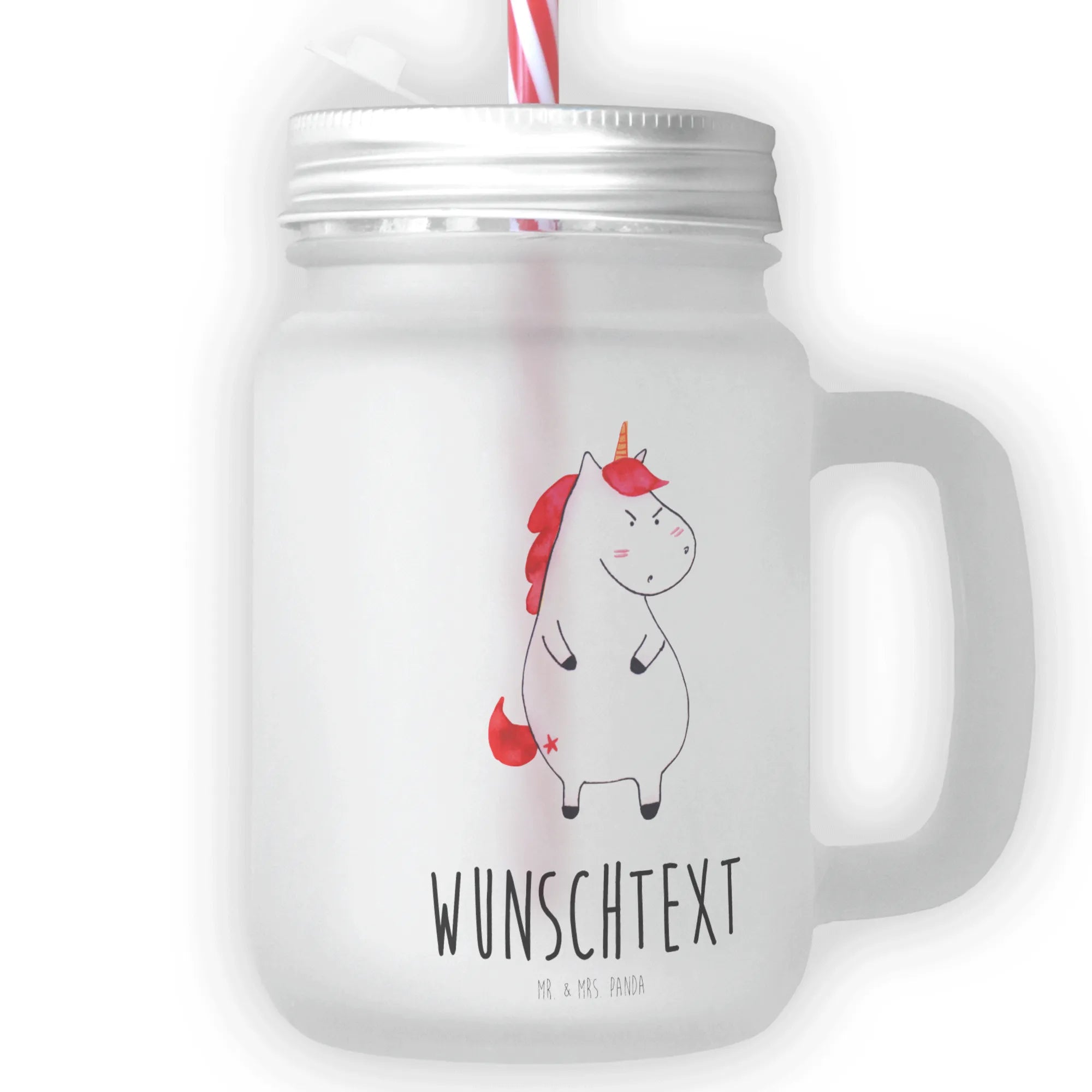 Personalisiertes Trinkglas Mason Jar Einhorn wütend