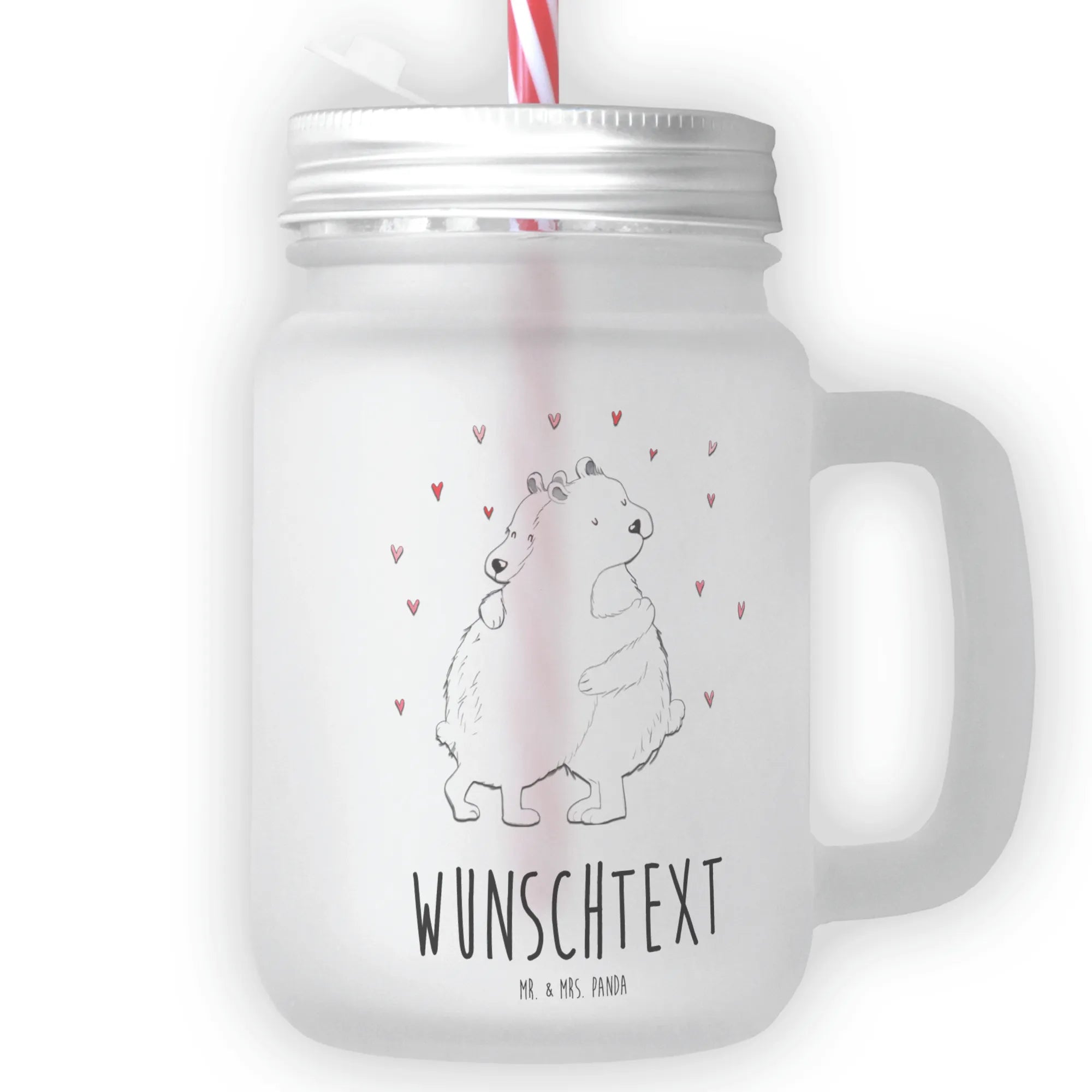Personalisiertes Trinkglas Mason Jar Eisbär Umarmen – Mr. & Mrs. Panda