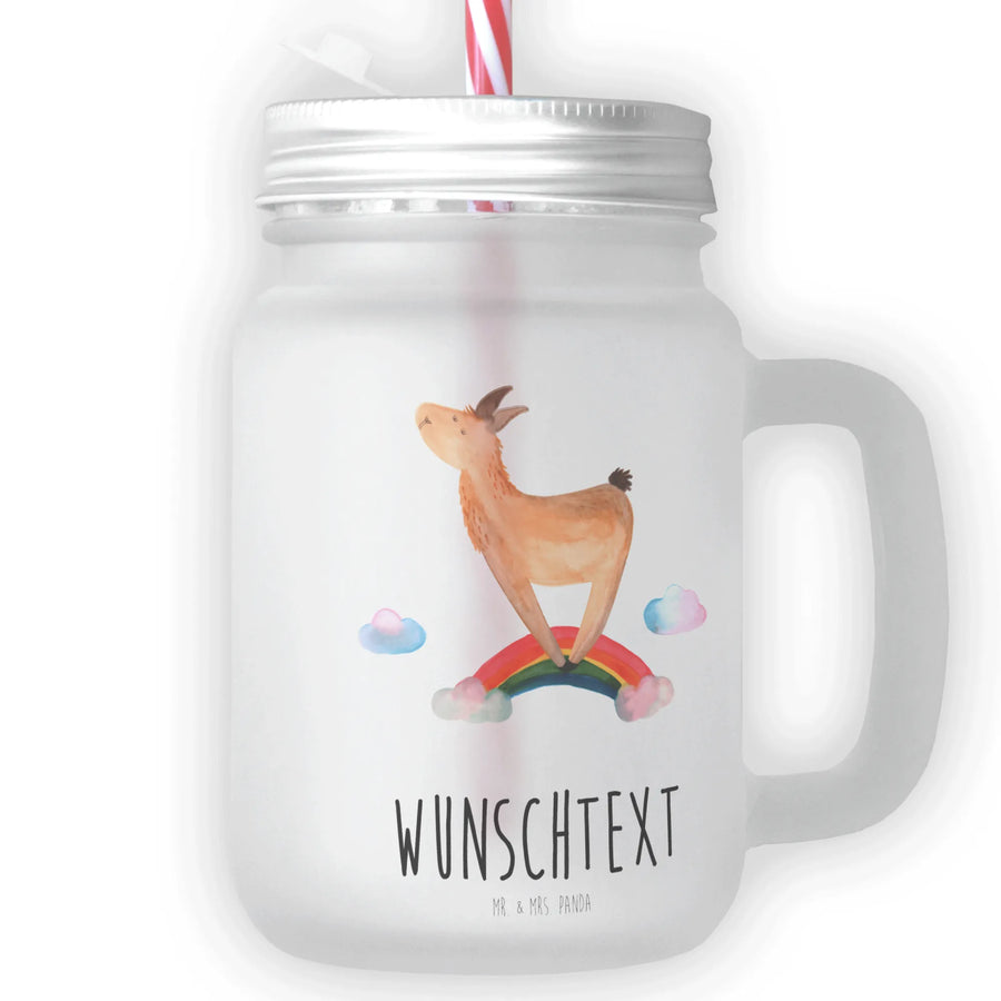 Personalisiertes Trinkglas Mason Jar Lama Regenbogen
