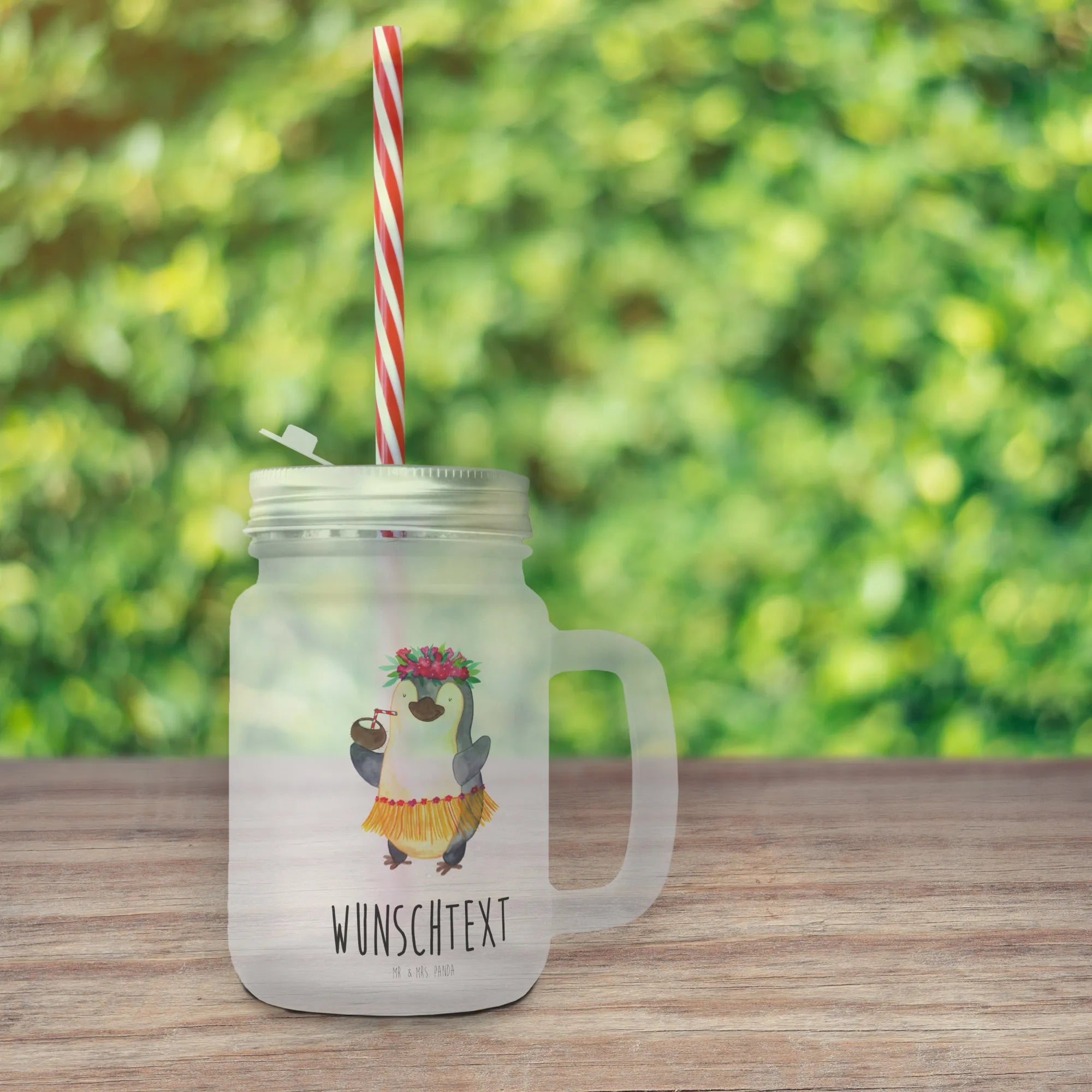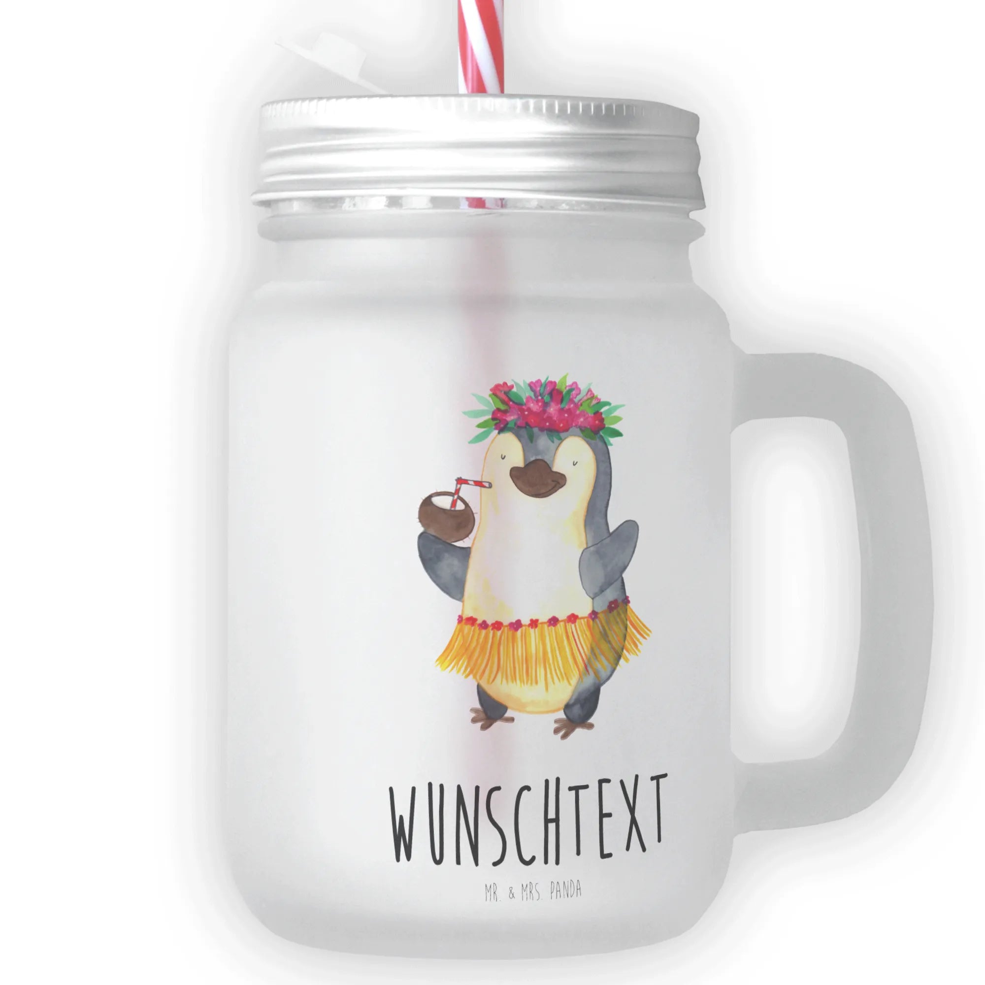 Personalisiertes Trinkglas Mason Jar Pinguin Kokosnuss