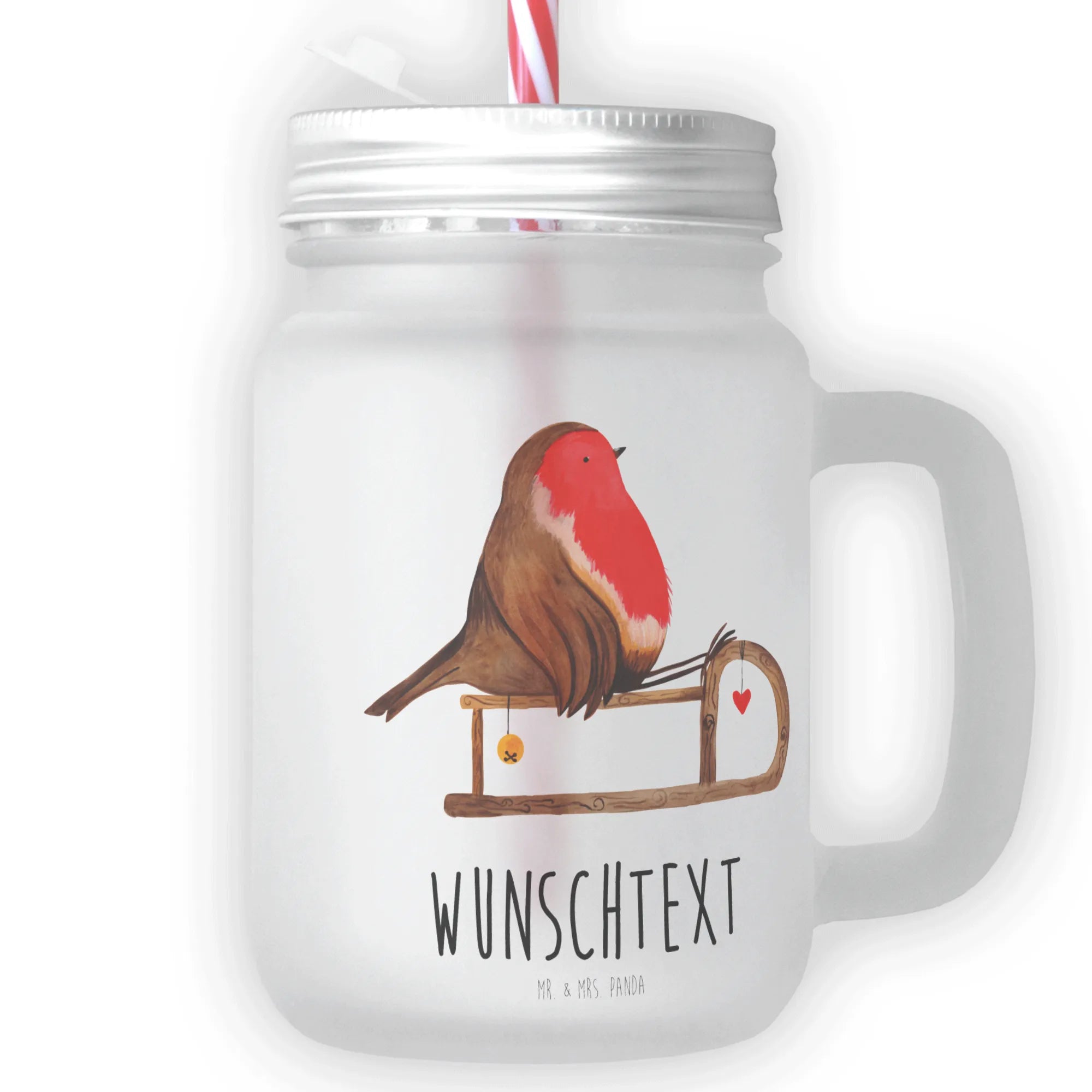 Personalisiertes Trinkglas Mason Jar Rotkehlchen Schlitten