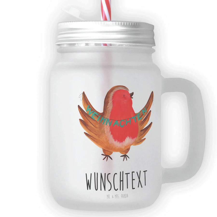 Personalisiertes Trinkglas Mason Jar Rotkehlchen Weihnachten