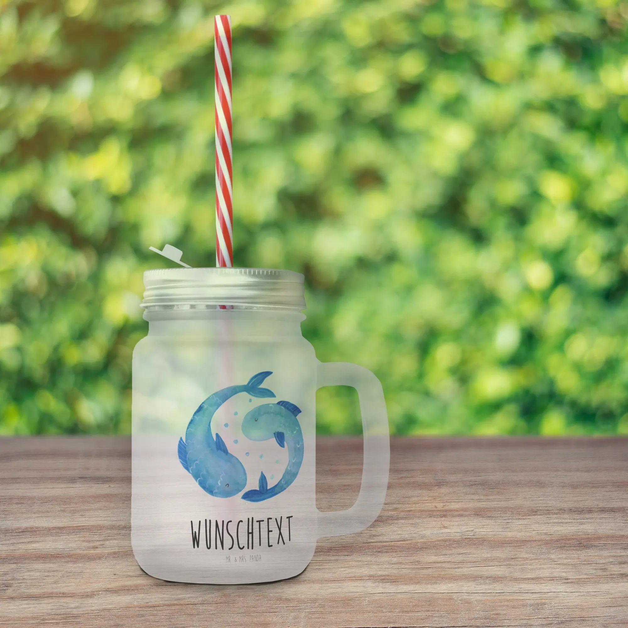 Personalisiertes Trinkglas Mason Jar Sternzeichen Fische