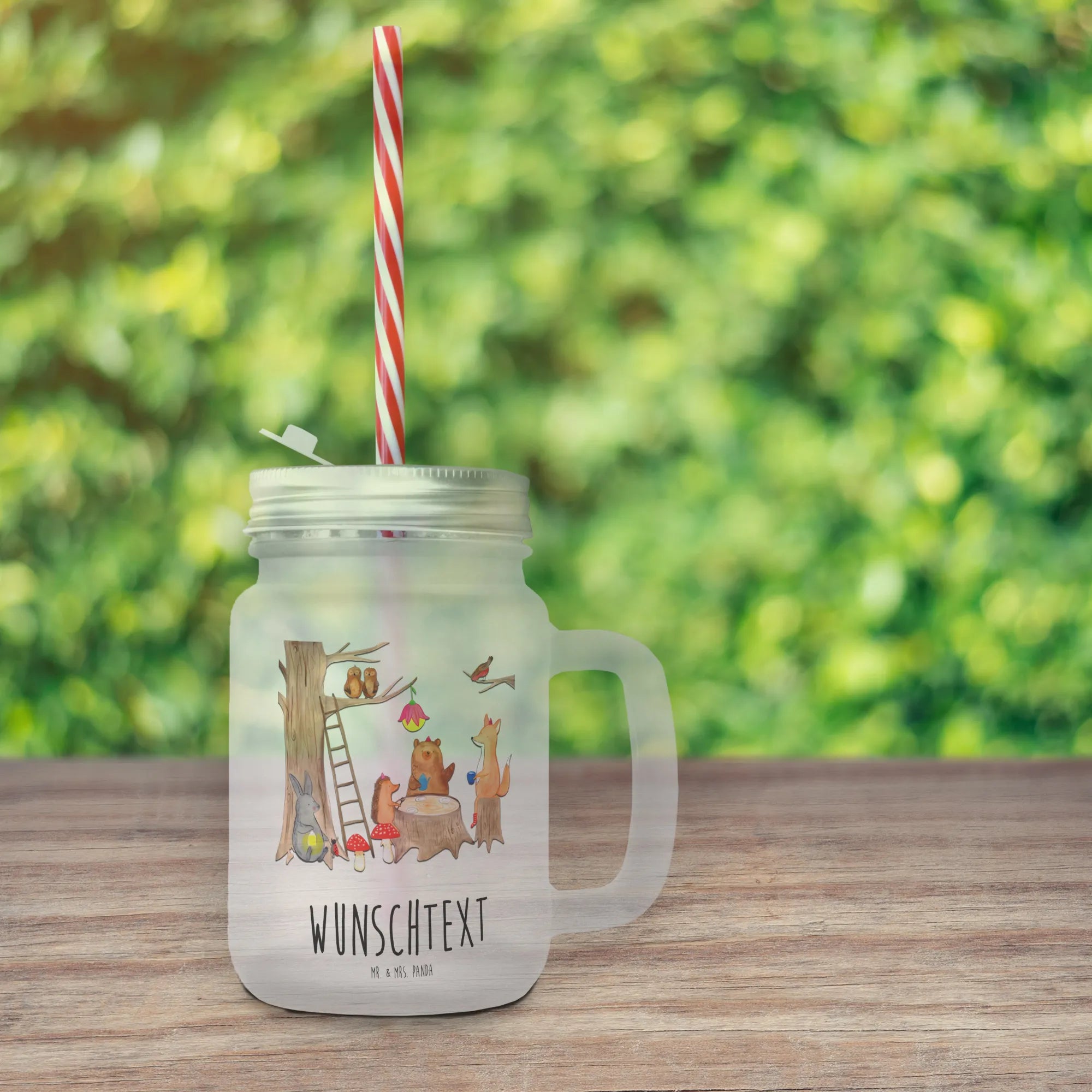 Verschönere die gemeinsamen Momente mit einer persönlichen Note und mache jeden Schluck zu etwas Besonderem. Verschenke Freude und gute Laune mit unserem personalisierten Trinkglas Mason Jar – ein echter Hingucker und ein ganz besonderes Geschenk für all jene, die Wald und Natur lieben! Lass die Waldtiere zu deinem nächsten Picknick einladen und genieße die Zeit in der Natur mit einem Glas, das extra für dich gestaltet wurde. Du wirst es lieben!