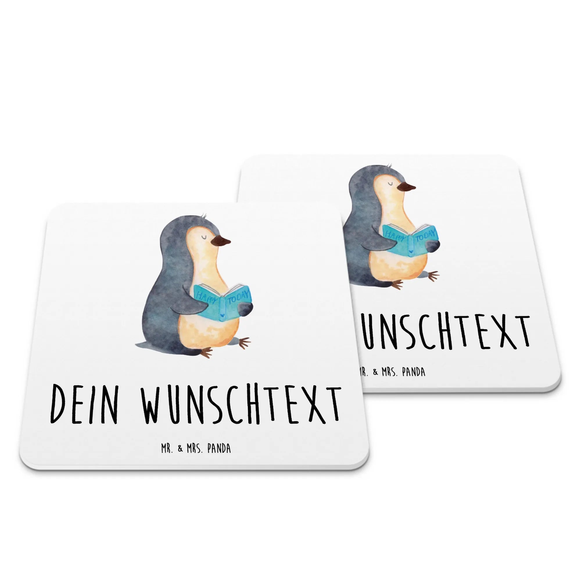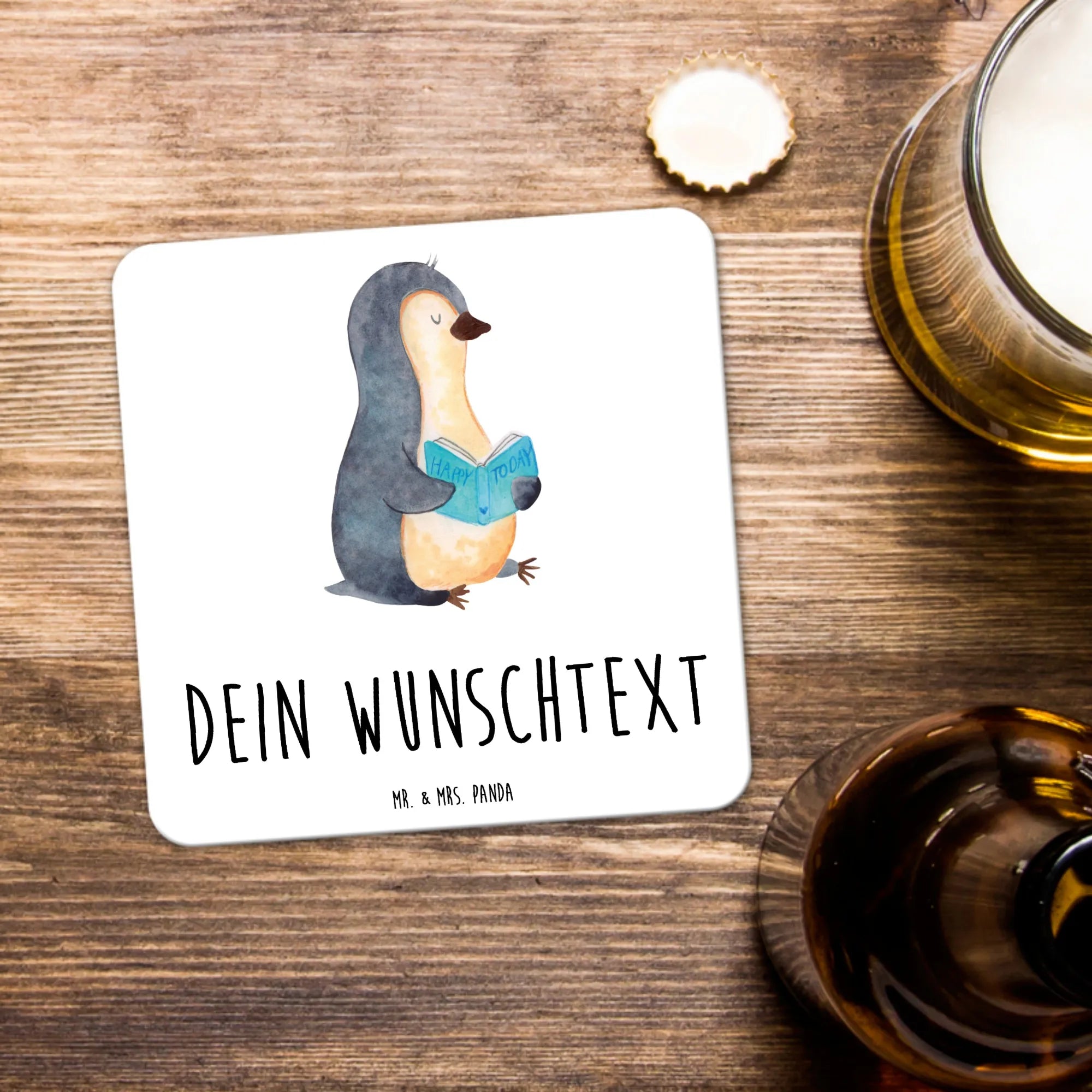 Du bist auf der Suche nach einem ganz besonderen Geschenk für einen Bücherfreund? Dann sind die personalisierten Untersetzer mit dem niedlichen Pinguin-Motiv "Buch" aus der Pinguin-Kollektion von Mr. & Mrs. Panda genau das Richtige!