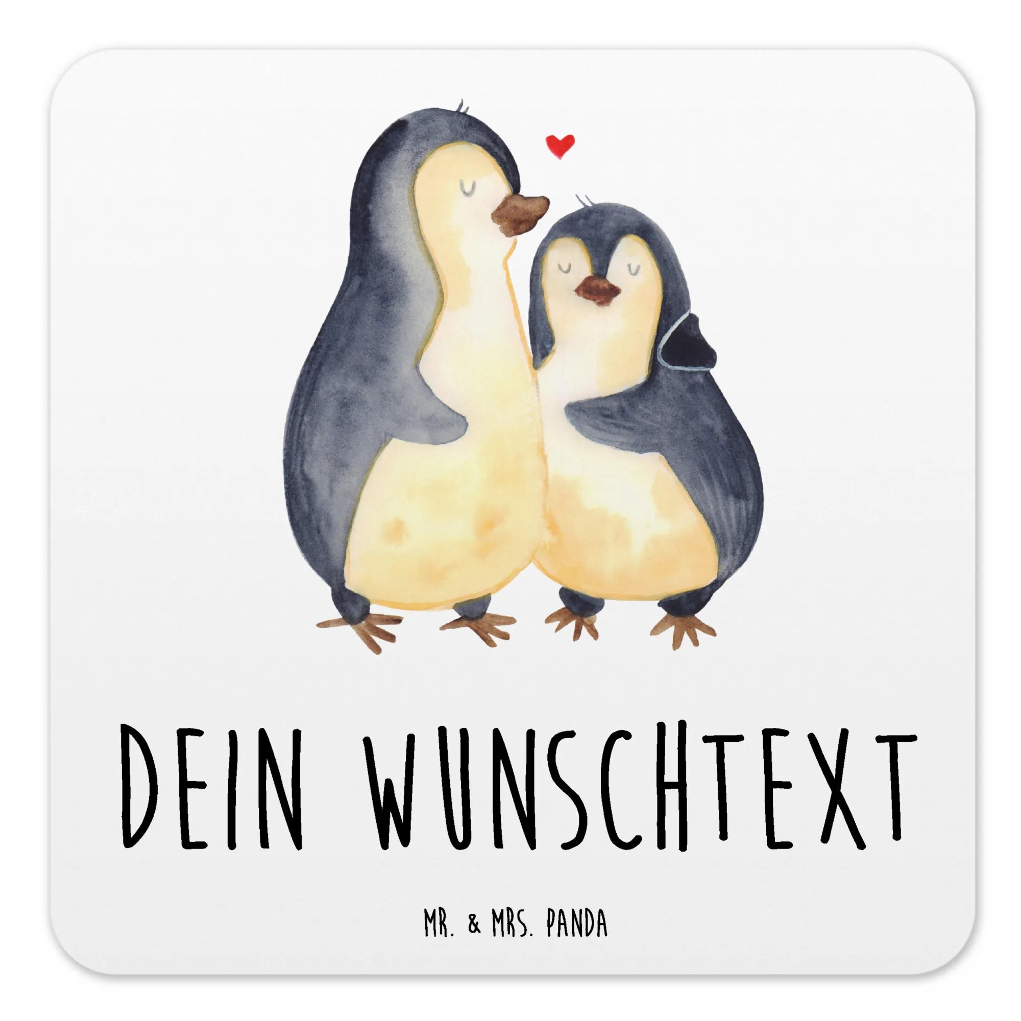 Das personalisierte Untersetzer Set "Pinguine Einschlafen" von Mr. & Mrs. Panda ist das perfekte Geschenk für all diejenigen, die Liebe und Zuneigung in ihrem Alltag feiern möchten. Mit einem zauberhaften Design, das zwei schüchterne Pinguine zeigt, die sich liebevoll umarmen, stellt dieses Set eine besondere Verbindung zu deinen Liebsten her. Oberhalb der Pinguine schwebt ein kleines rotes Herz, und die warmen Aquarellfarben sind ein echter Hingucker.