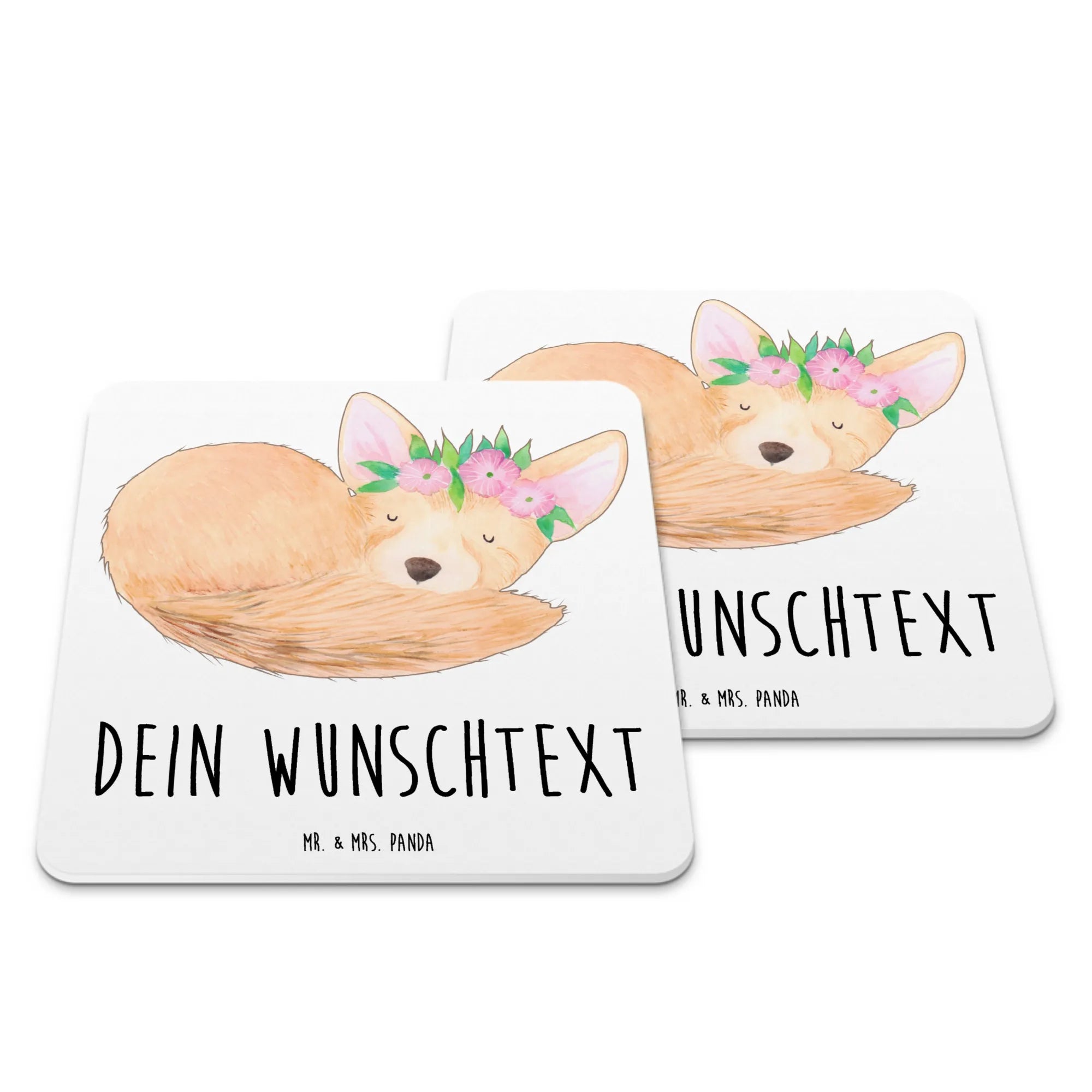 Personalisiertes Untersetzer Set Wüstenfuchs Blumen – Mr. & Mrs. Panda