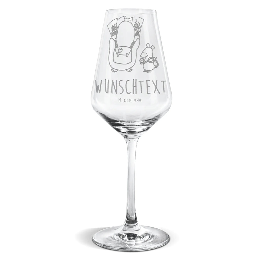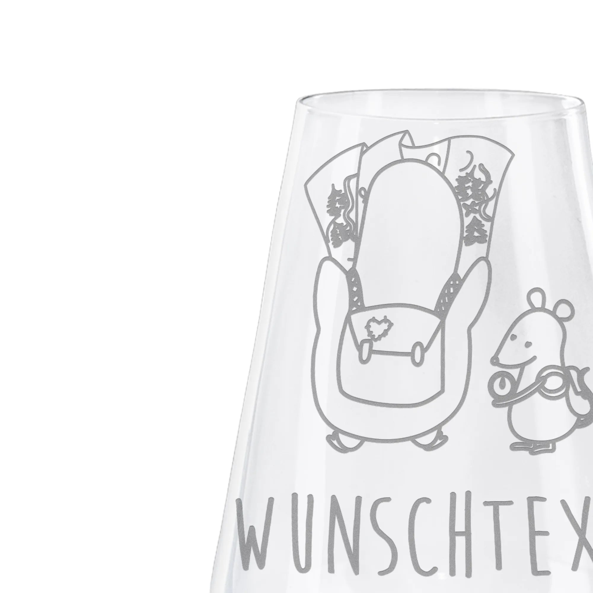 Personalisiertes Weißwein Glas Pinguin & Maus Wanderer