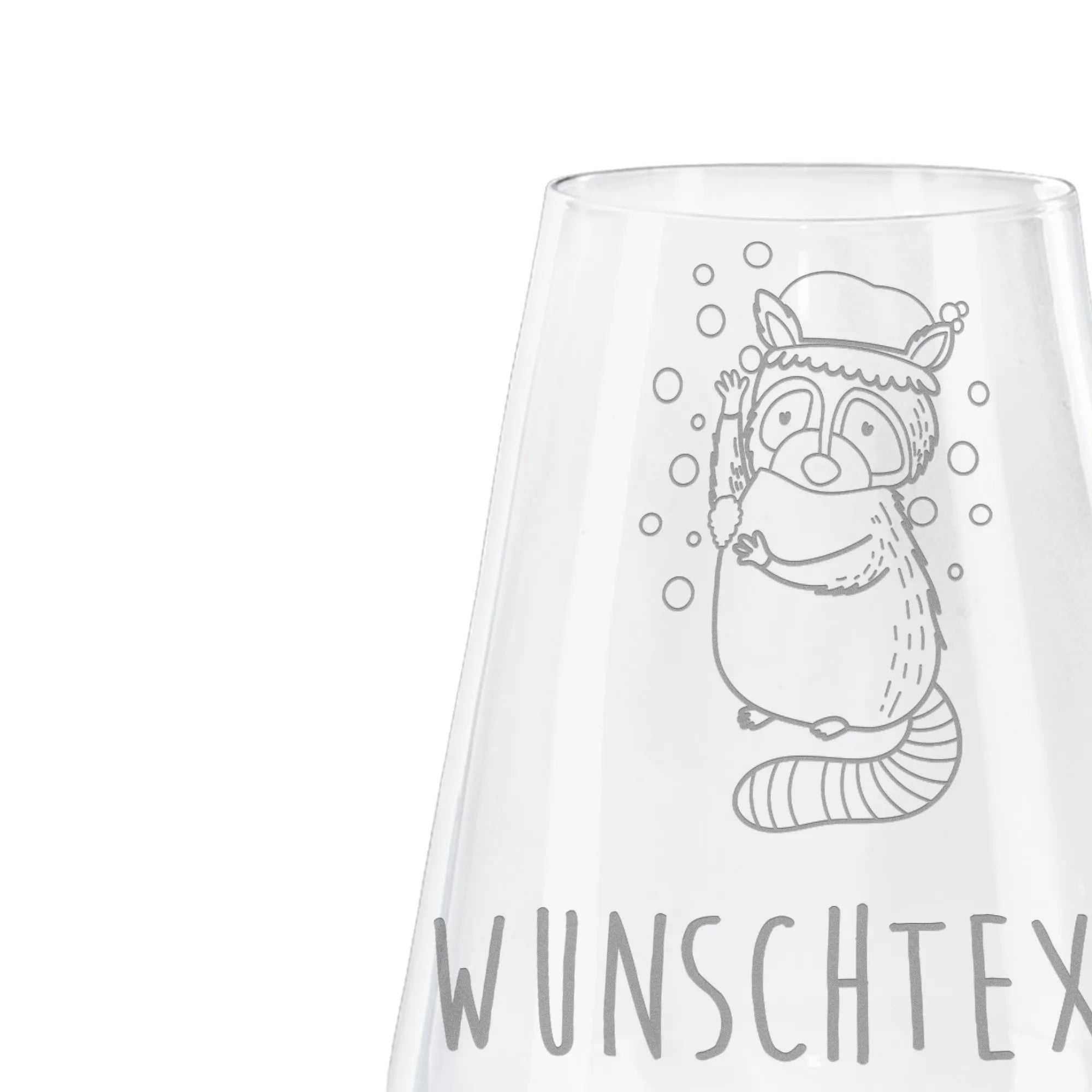 Entdecke das perfekte personalisierte Weißweinglas von Mr. & Mrs. Panda mit einem charmanten Waschbär-Motiv aus der Small World Kollektion!