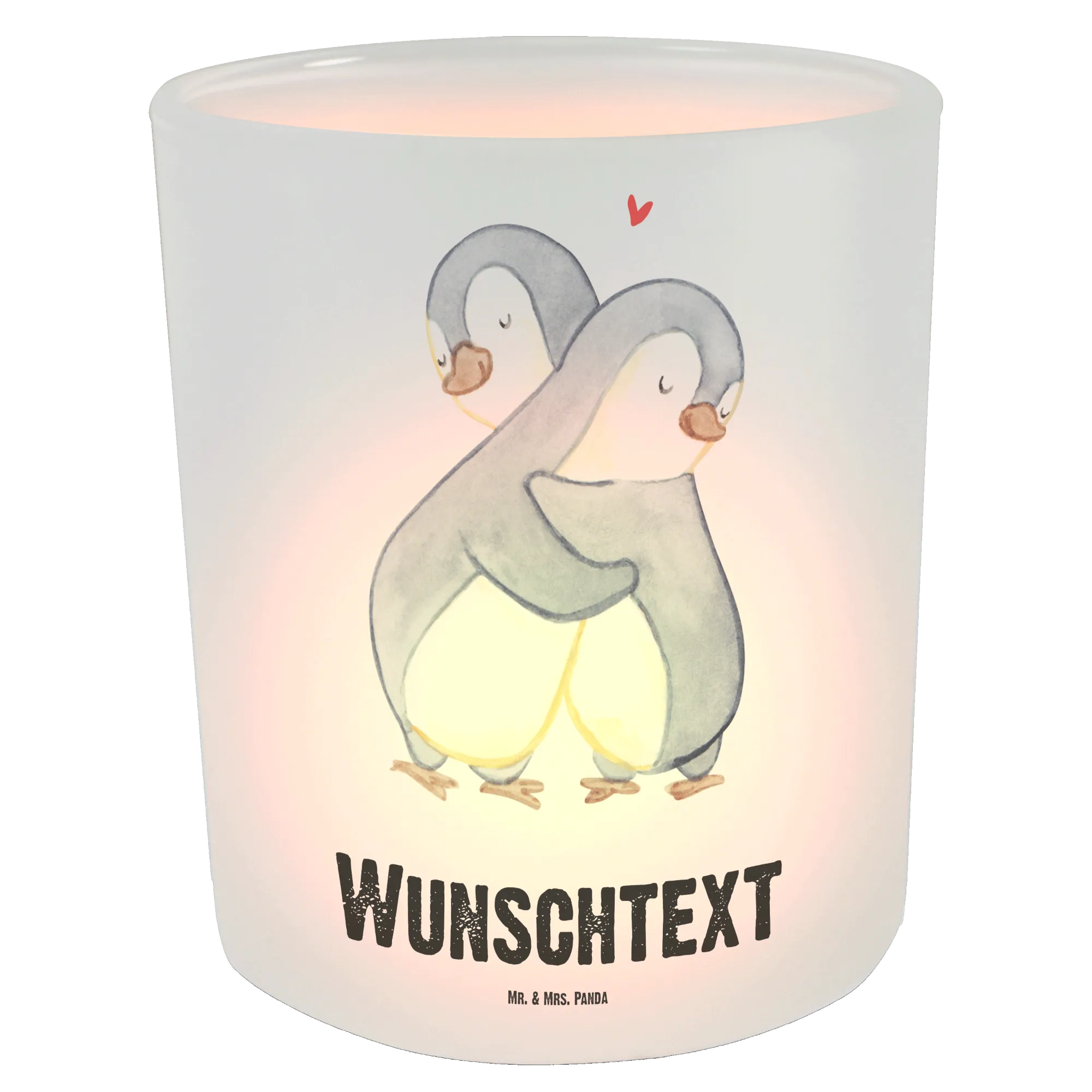 Personalisierter Teelichthalter Pinguine Kuscheln