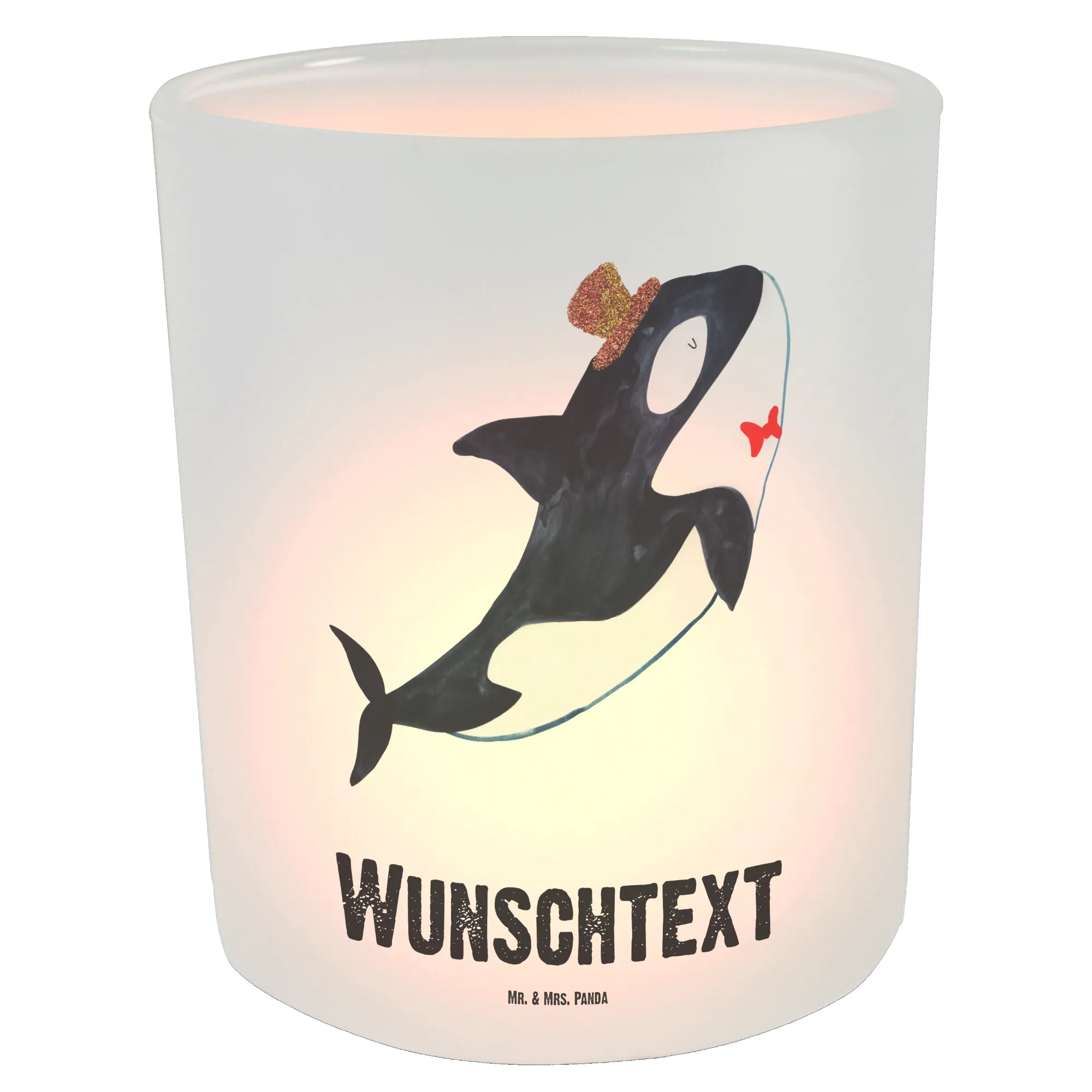 Das personalisierte Windlicht Orca Zylinder von Mr. & Mrs. Panda ist das perfekte Geschenk für alle, die das Meer lieben und besonderen Wert auf Individualität legen. Ob als Geschenk zum Geburtstag, zur Hochzeit oder einfach nur so, dieses Windlicht verleiht jedem Anlass eine besondere Note. Mit einem fröhlich wirkenden Orca, der eine charmante Pose einnimmt und einen kuscheligen Zylinder trägt, bringst du nicht nur einen Hauch von Meer in dein Zuhause, sondern auch Freude und Glück. Jedes Windlicht ist personalisierbar mit deinem Wunschnamen oder einem speziellen Wunschtext – ein einzigartiges Geschenk, das in Erinnerung bleibt.