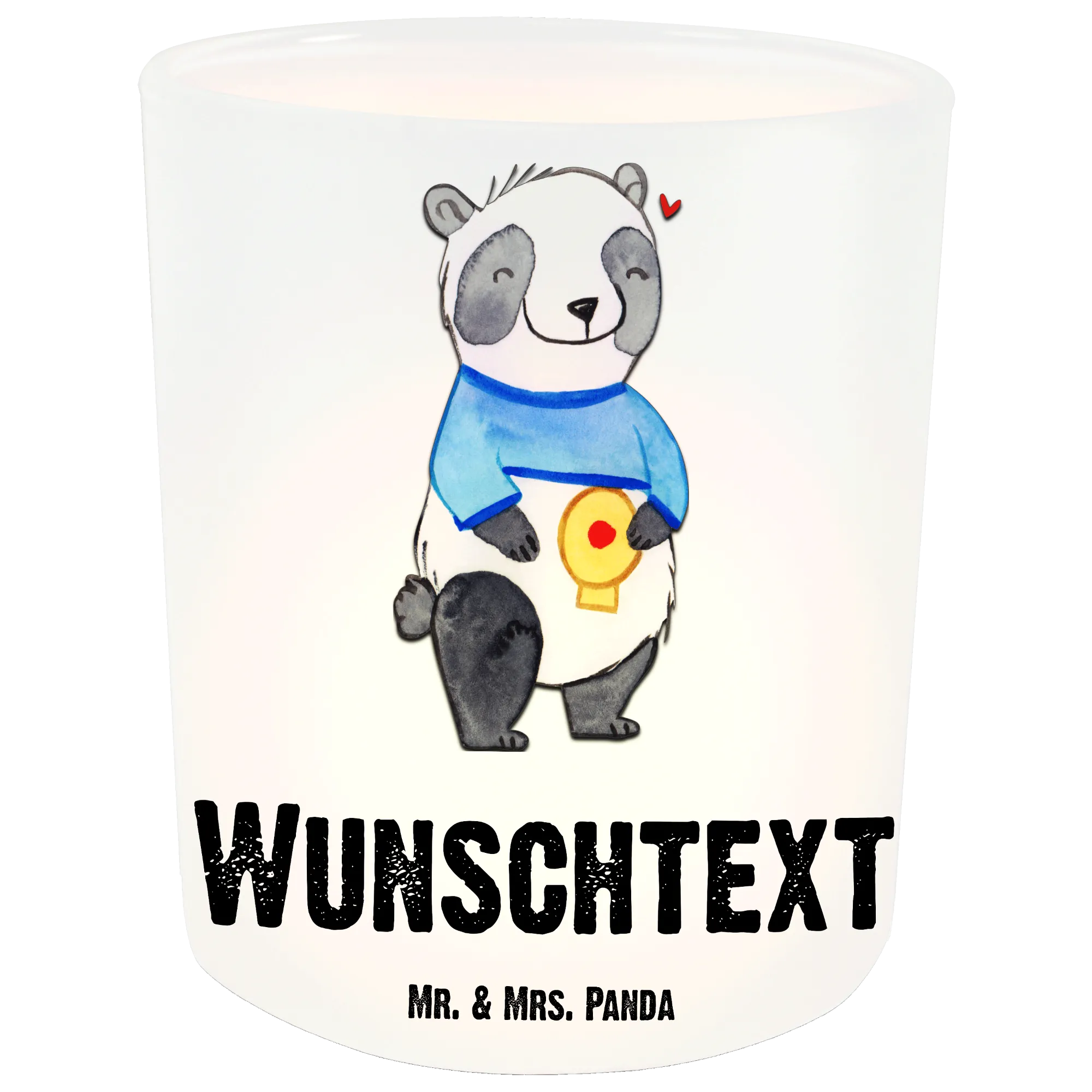 Dieses stilvolle, personalisierte Windlicht von Mr. & Mrs. Panda ist ein Must-Have für eine romantische Atmosphäre! Mit einer Größe von 70 mm x 80 mm und aus satiniertem Glas gefertigt, ist es nicht nur schön, sondern auch äußerst praktisch. Bedruckt mit liebevollen Motiven und Sprüchen, kann es individuell mit deinem Wunschtext oder Namen gestaltet werden. Dieses Windlicht schützt deine Teelichter vor Wind und Kälte und sorgt für ein sanftes, wohltuendes Licht. Ideal für entspannte Abende zu Hause oder als Geschenk für einen besonderen Menschen. Bitte beachte, dass wir eine sanfte Handwäsche empfehlen, um die Schönheit des Glases zu erhalten.