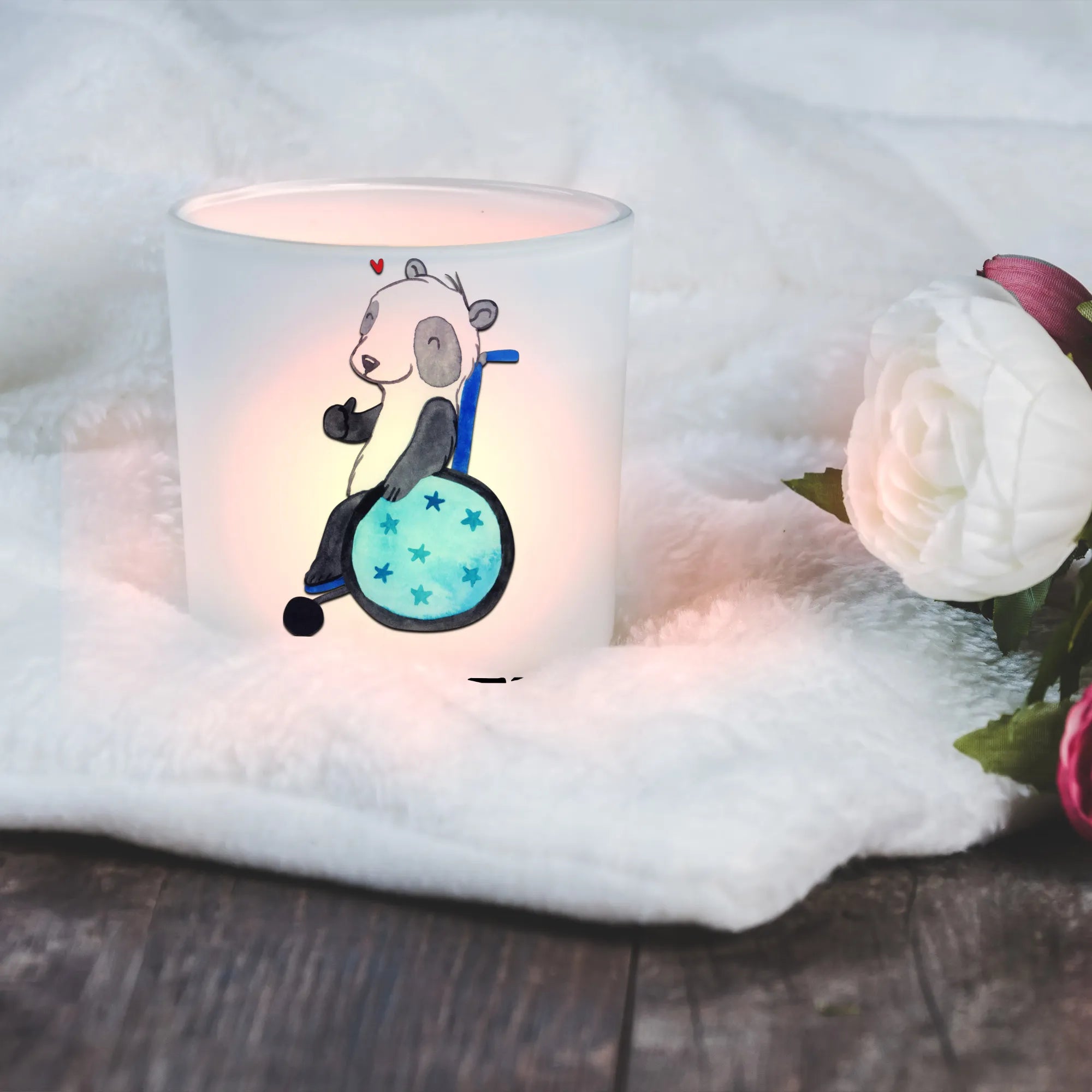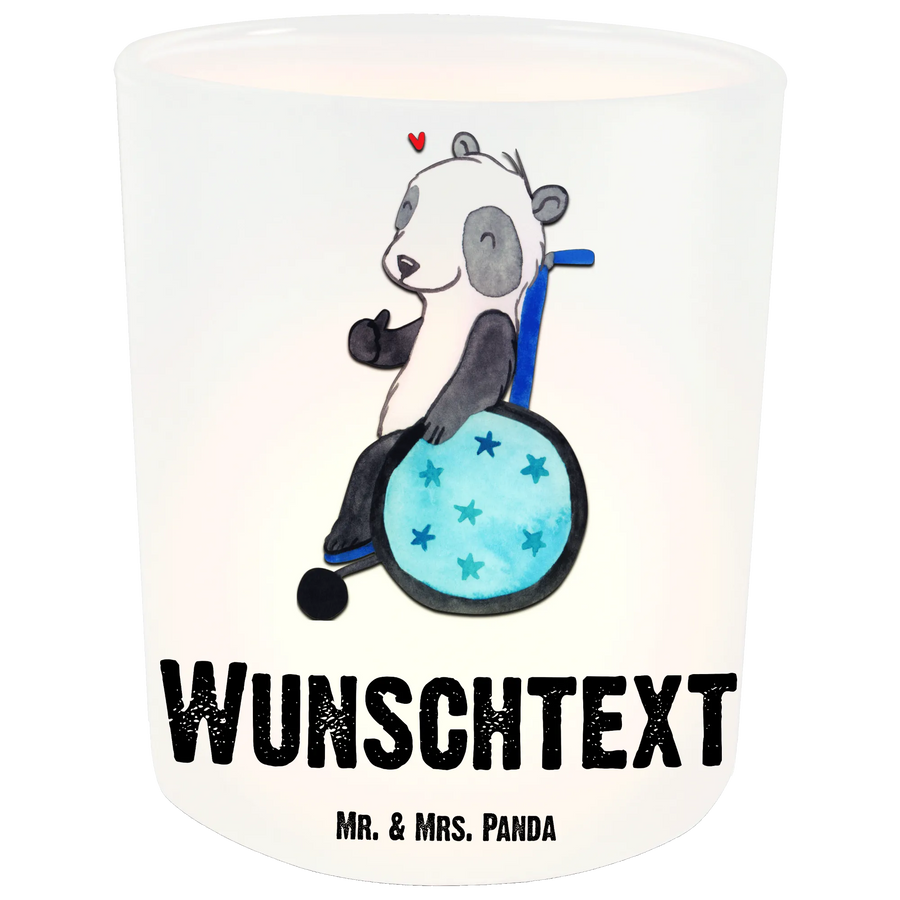 Persönliches Windlicht „Panda Rollstuhl“ – Kollektion „Tiere mit Superkräften“