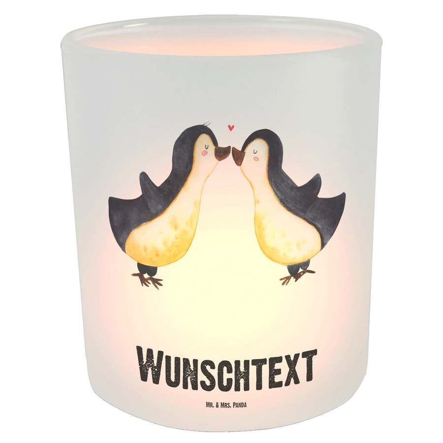 Das personalisierte Windlicht "Pinguin Liebe" von Mr. & Mrs. Panda ist das perfekte Geschenk für alle, die ihre Liebe auf eine besondere Weise zelebrieren möchten. Mit einem zauberhaften Design, das zwei süße Pinguine zeigt, die sich zärtlich aneinander kuscheln, und einem romantischen Slogan – "Du bist mein Stern, zu dem ich aufblicke, der an dunklen Tagen für mich leuchtet und der mich träumen lässt" – wird dieses Windlicht zum wahren Liebesbeweis.