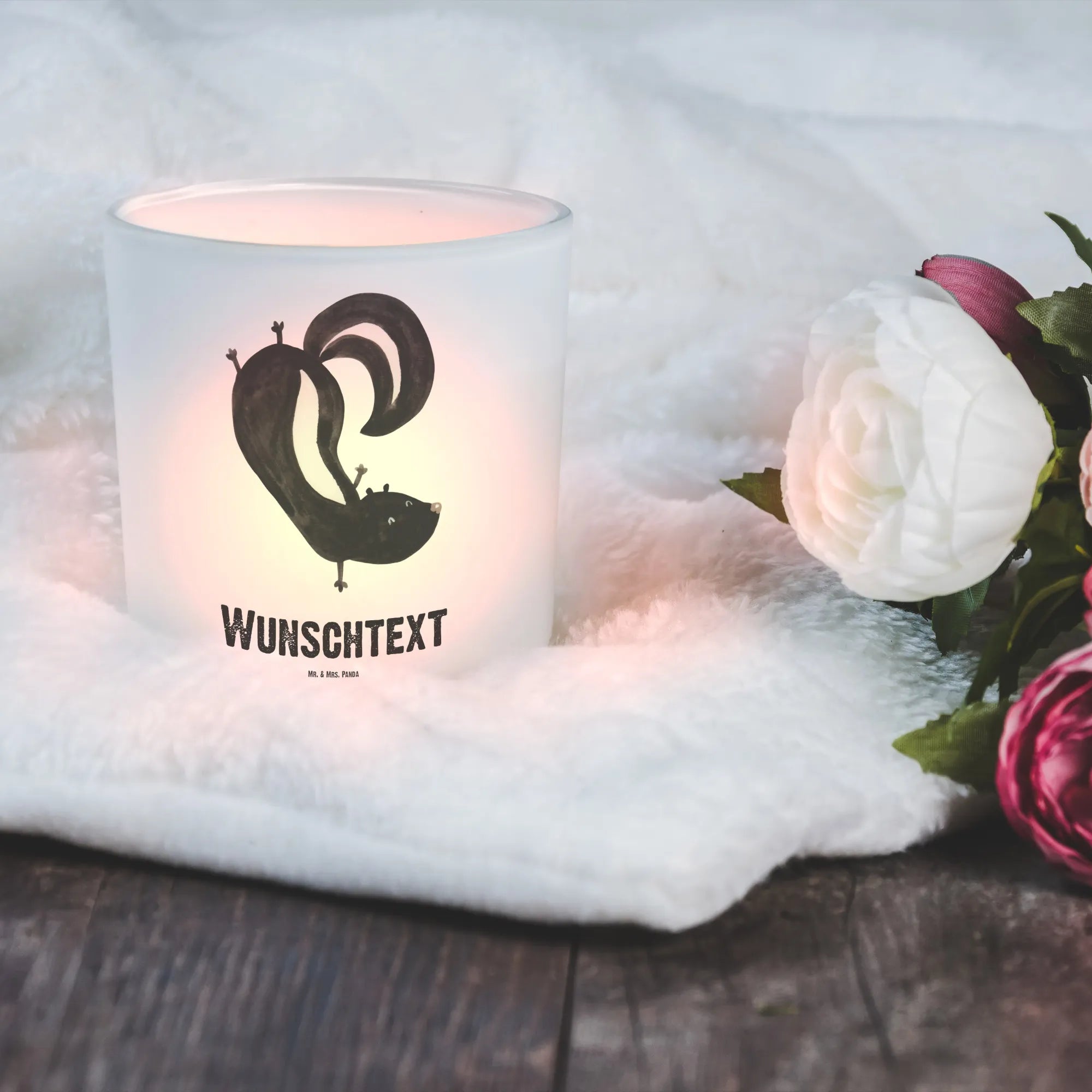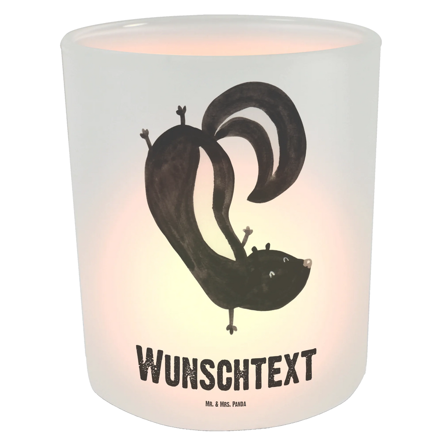 Entdecke das personalisierte Windlicht Stinktier Handstand von Mr. & Mrs. Panda! Dieses zauberhafte Windlicht aus satiniertem Glas wird Dein Zuhause in ein warmes, einladendes Licht tauchen.