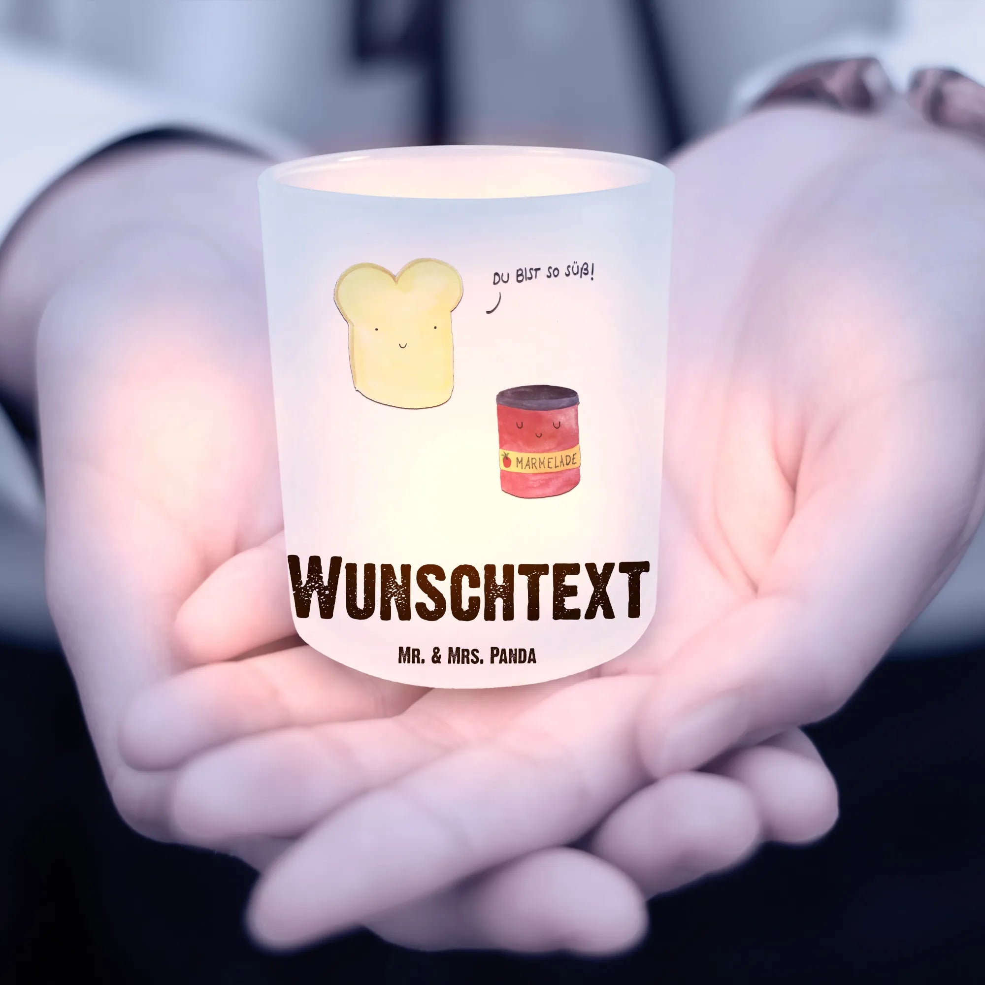 Entdecke die Magie des personalisierten Windlichts mit dem süßen Motiv Toast & Marmelade aus der Small World Kollektion von Mr. & Mrs. Panda!